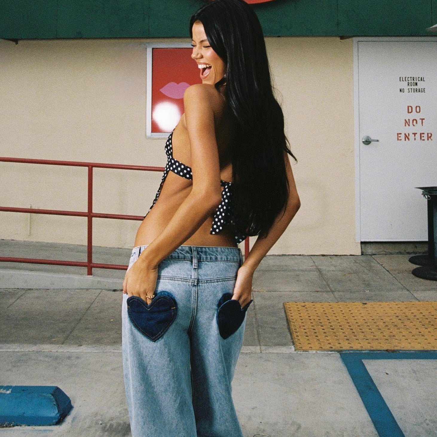 Cross-border summer women's straight denim washed heart-shaped embroidered jeans loose high street casual street trousers