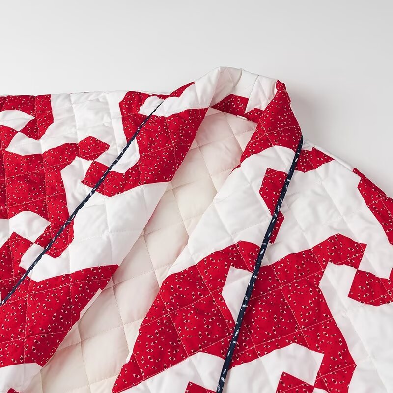 Cross-border women's clothing 2025 autumn and winter new European and American fashion ins large size loose lapel contrasting color printed cotton jacket