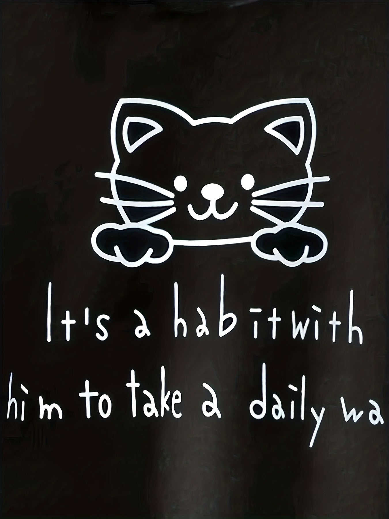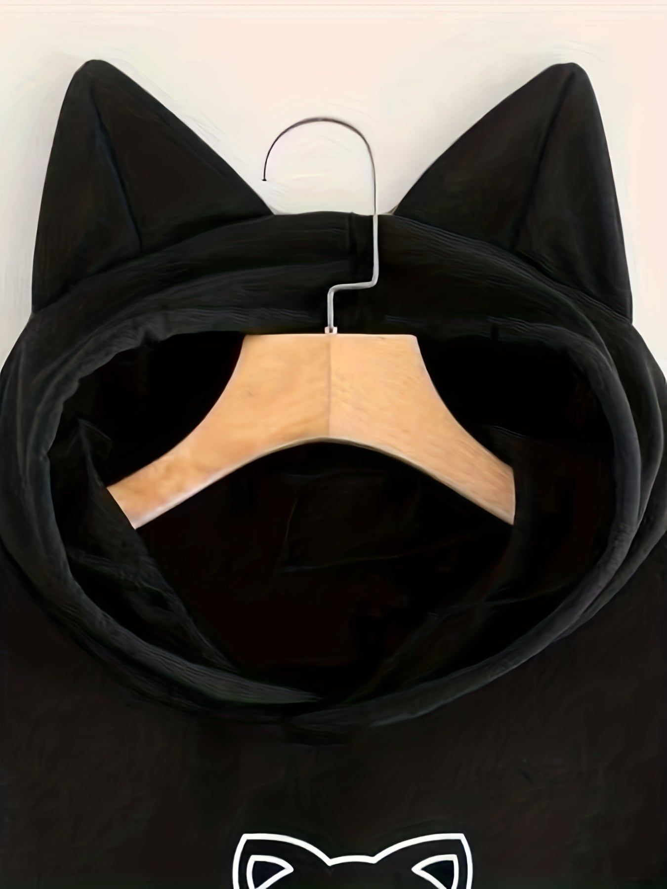 Cute Cat & Letter Print Hoodie, Casual Long Sleeve Kangaroo Pocket Hoodies Sweatshirt, Women's Clothing