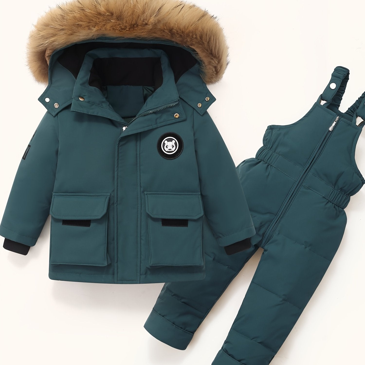 DEAR RABBIT Kids' Cozy Down Jacket & Jumpsuit Set -, Thickened Winter Wear for Boys & Girls 1-5 Years, Hooded with Pockets