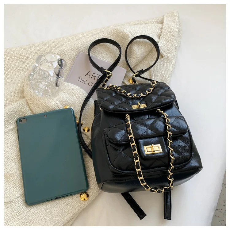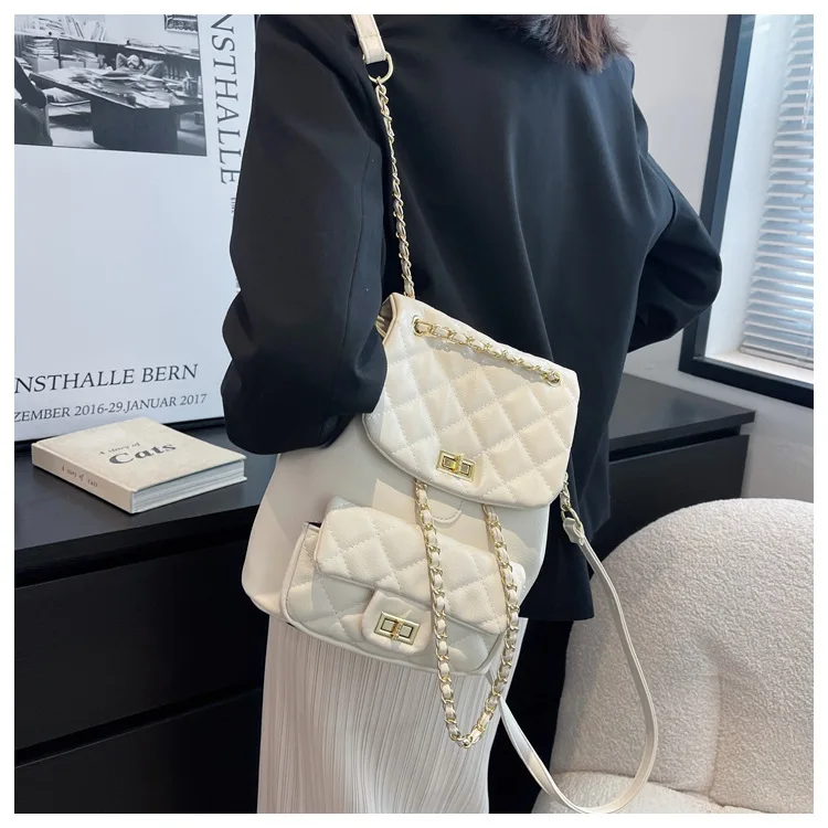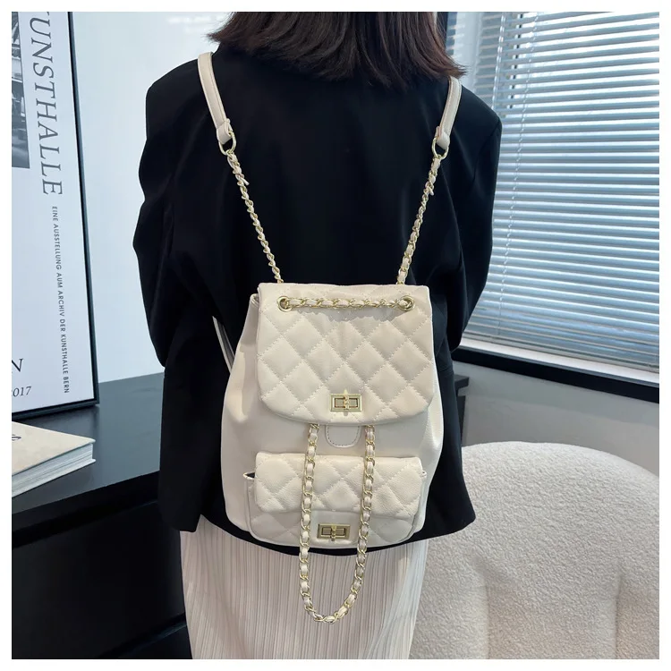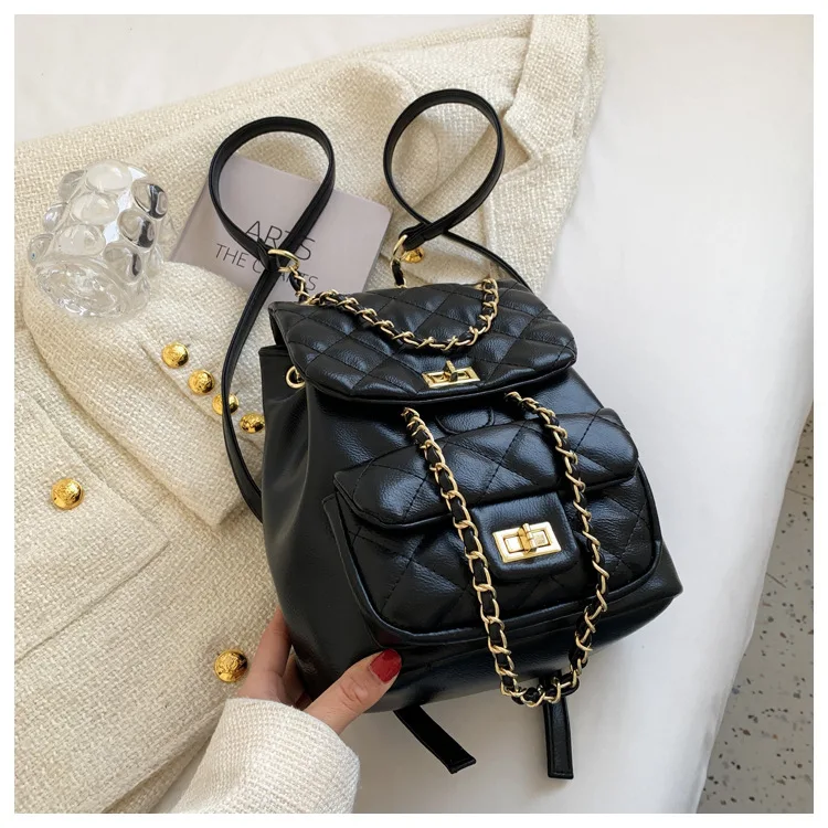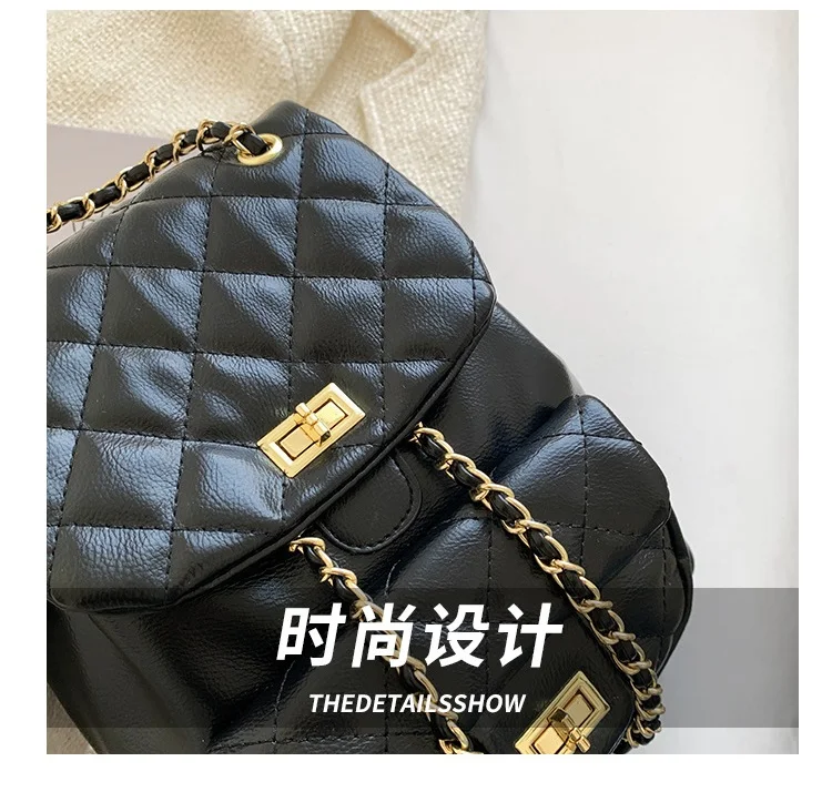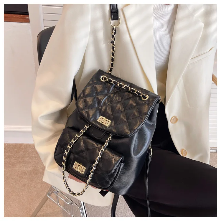 flowersverse Back to school Diamond Grain Women Backpack School Bags For Teenage Girls Brand Design Travel Backpacks Pu Leather Chain Female Shoulder Bags