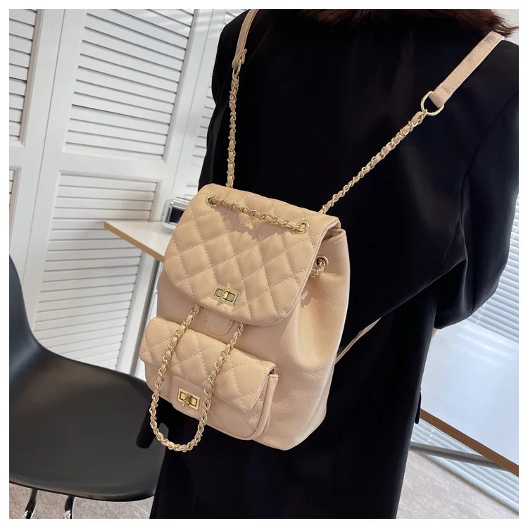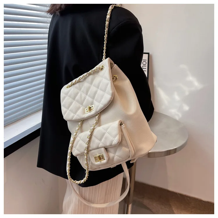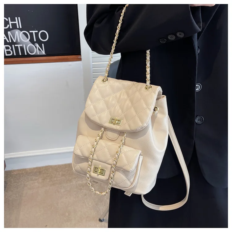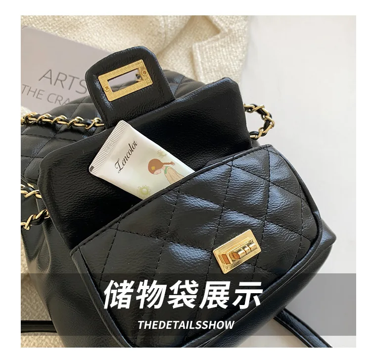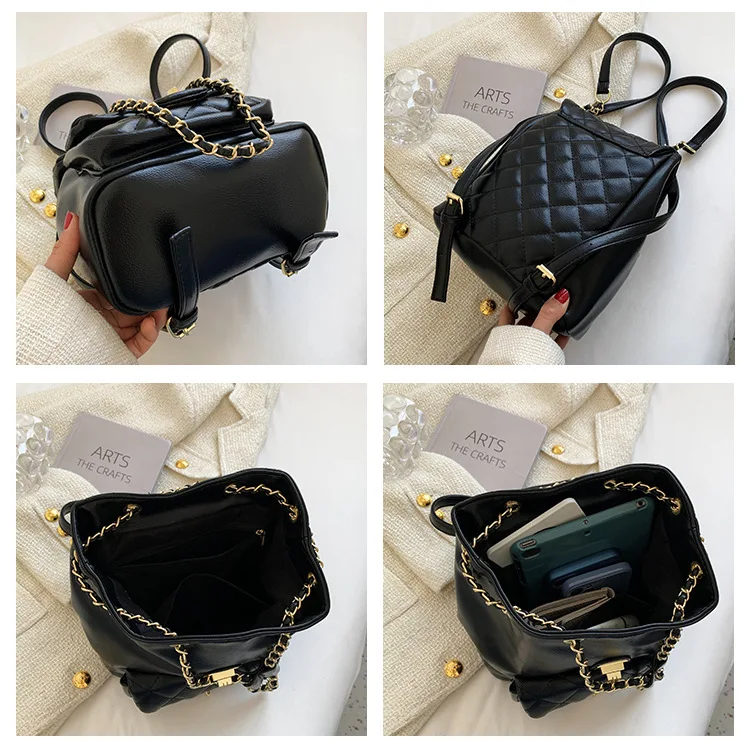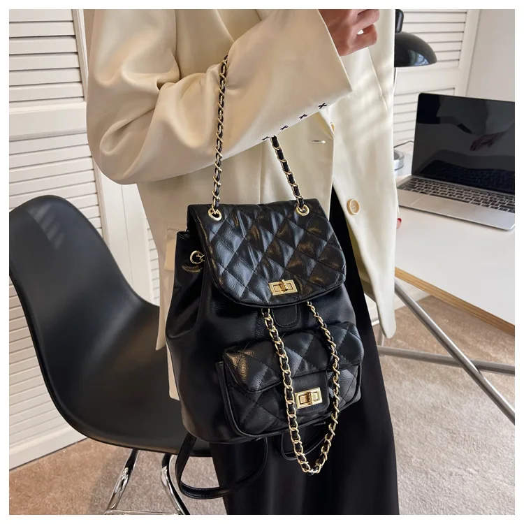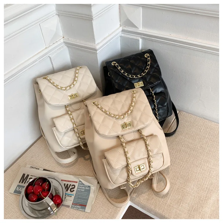 flowersverse Back to school Diamond Grain Women Backpack School Bags For Teenage Girls Brand Design Travel Backpacks Pu Leather Chain Female Shoulder Bags