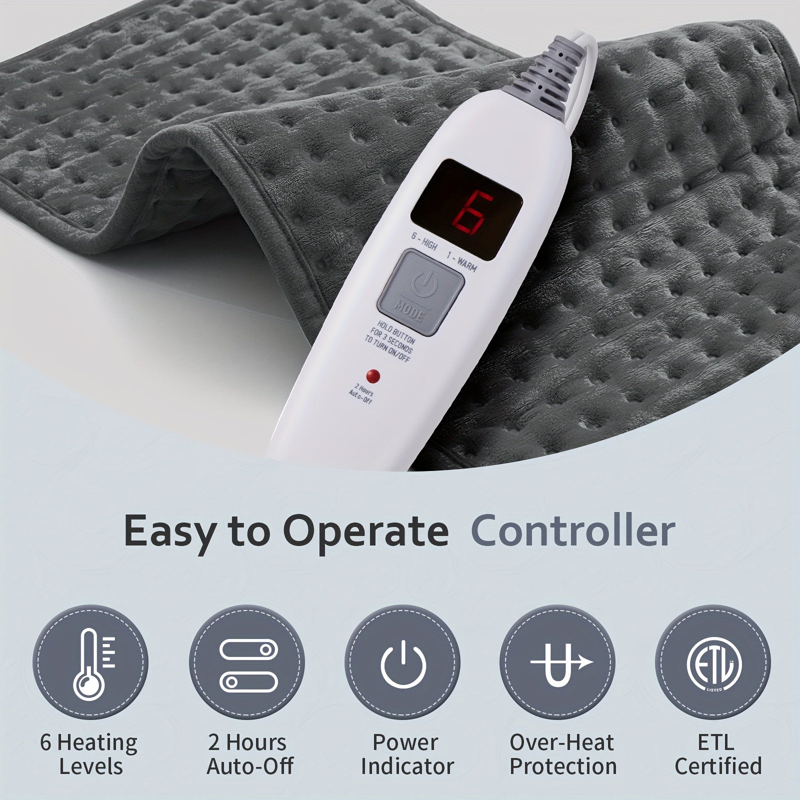 Electric Heating Pad 12"x24" For Back Pain Relife, Cramps, Neck And Shoulder, Moist/Dry Heat Therapy With Auto Shut Off Heating Pads, Holiday Christmas Gifts For Women Men Mom Dad, Gray