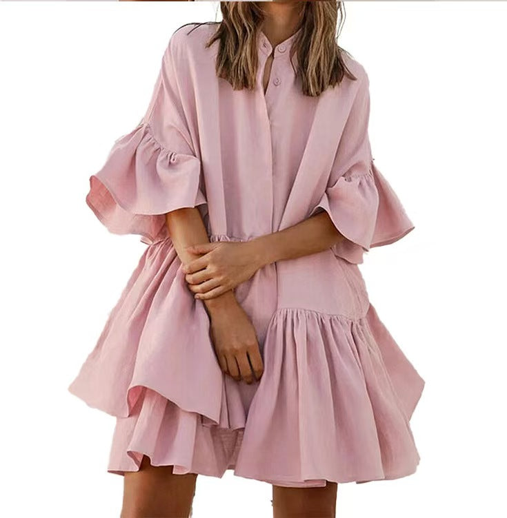 flowersverse Falbala Half Puff Sleeves Zipper Loose High-Neck Outerwear Jackets