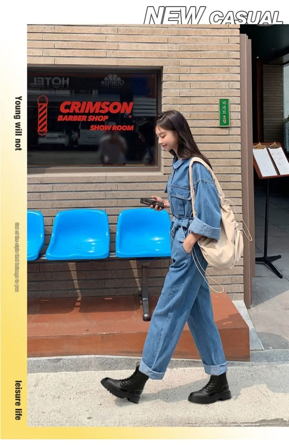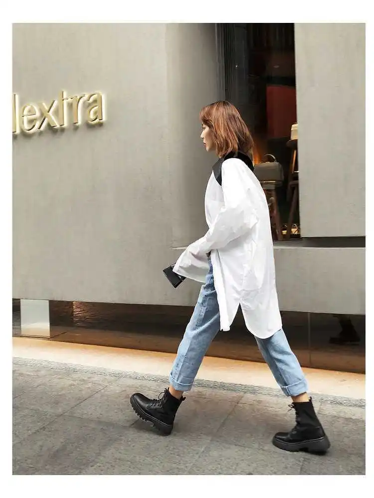 Christmas Gift Fashion Boots Women Lace Up Comfort Platform Mid Calf Boots Woman Sock Shoes Ladies No Slip Flats Boots Autumn Botas Female