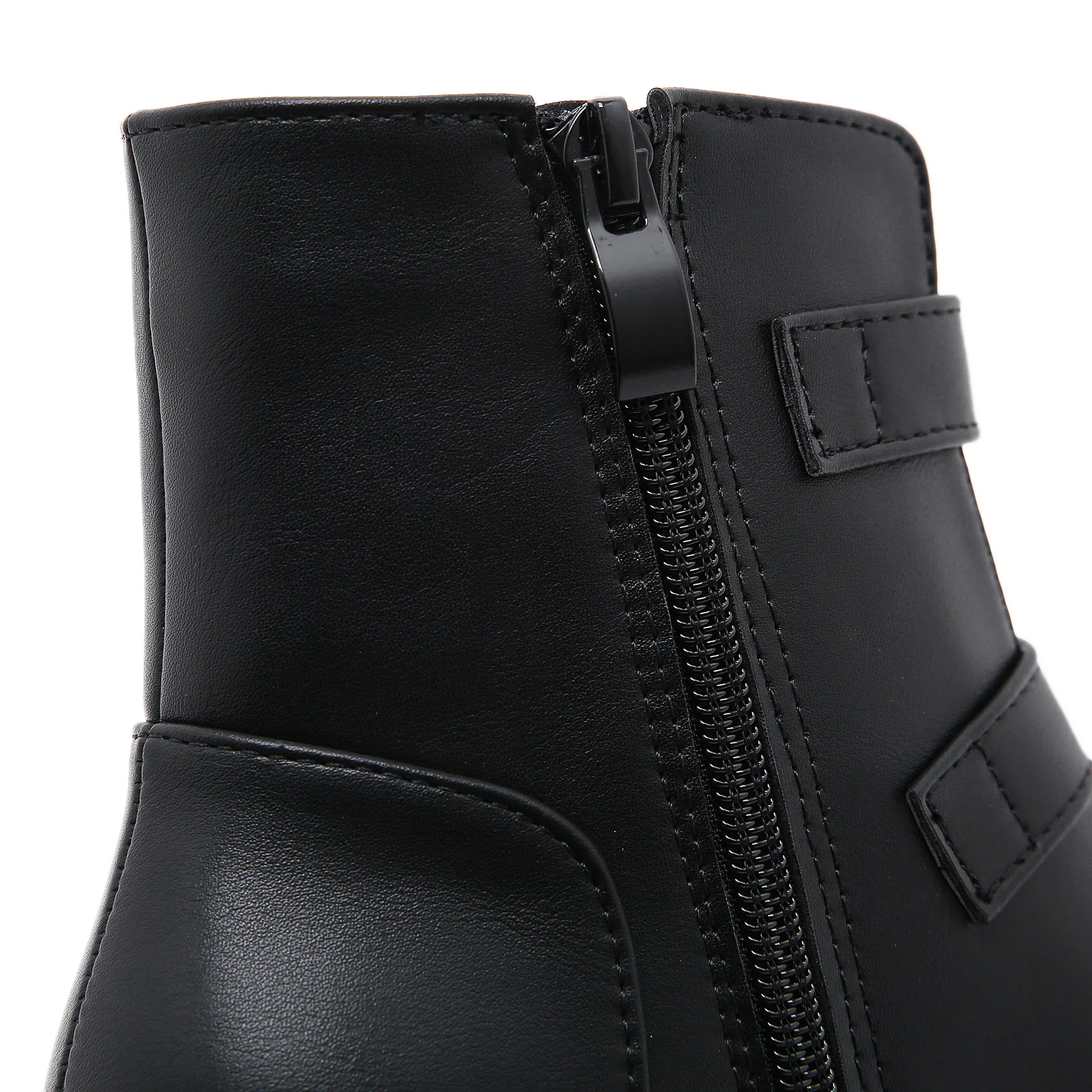 Amozae Fashion Thick Sole High Heel Ankle Boots Women's Elf Belt Tower Buckle Round Toe Patent Leather Shoes Sapatos Femininos De Salto