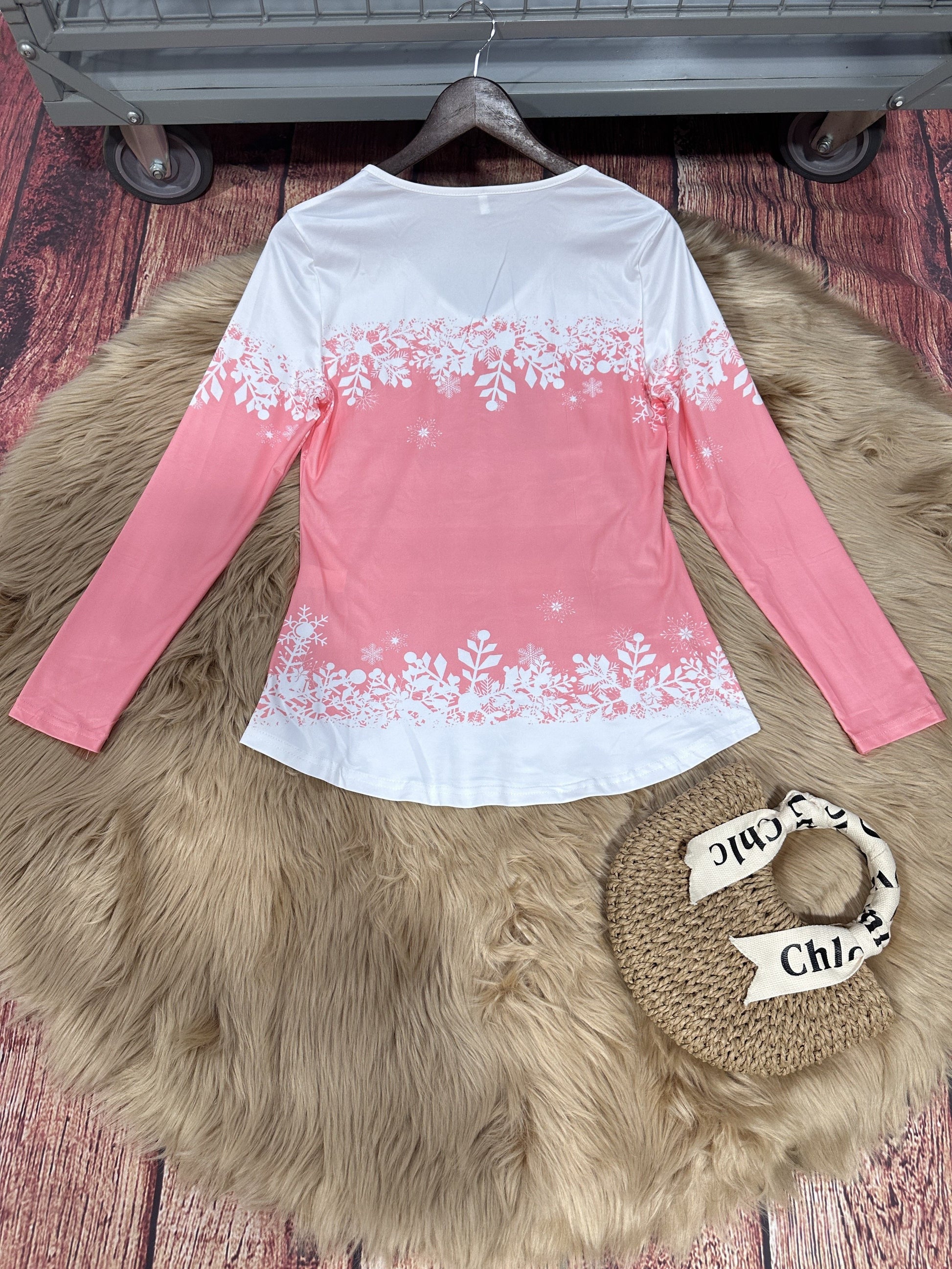 Festive Snowman Charm Long Sleeve V-Neck T-Shirt for Women - Soft and Cozy Holiday Seasonal Style with Vibrant Print Design - Perfect for Christmas Party, Casual Daily Wear, and Gift Giving