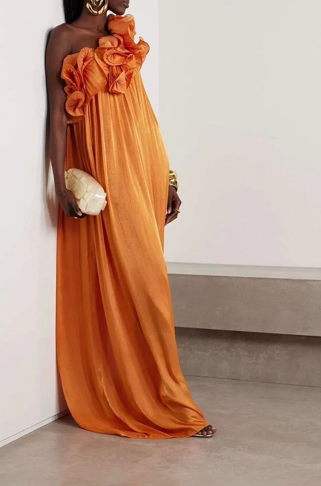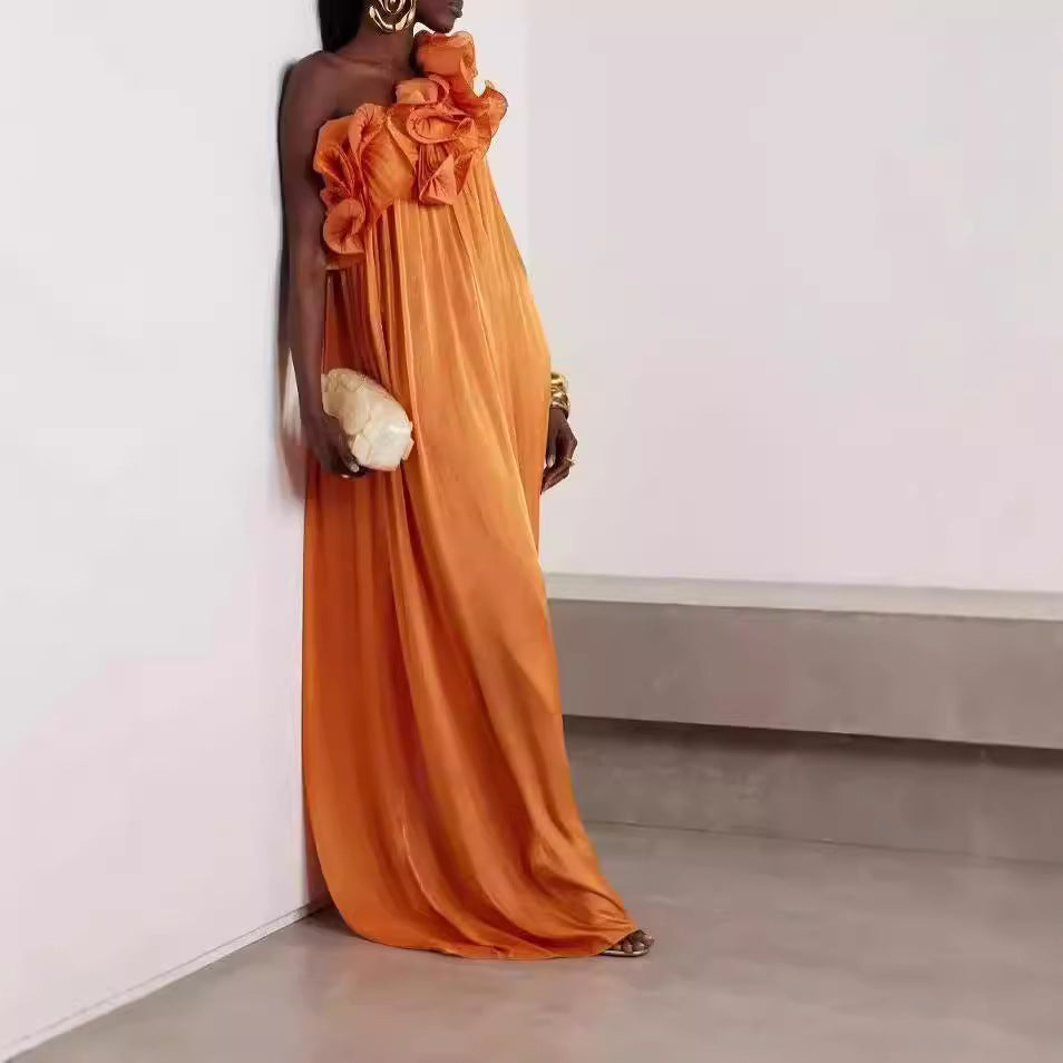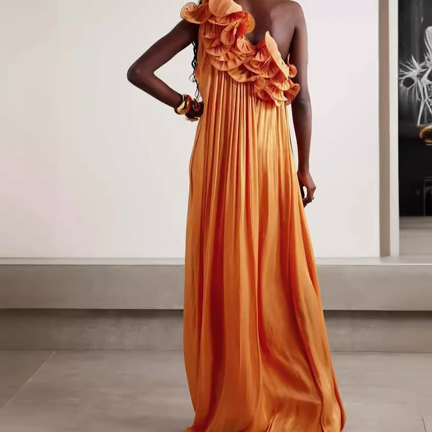 FLOWERSVERSE 2025 new women's clothing 2025 trade flower printing pleated off-the-shoulder splicing 2025 backless summer popular dress