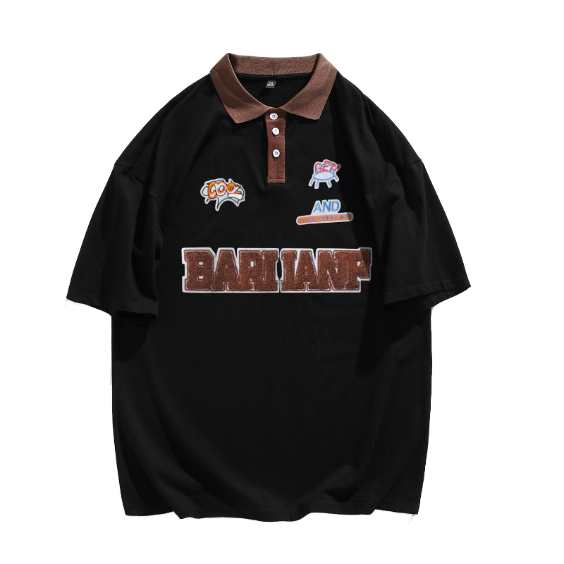 flowersverse American College Style T-shirts Plus Size Mens Short Sleeve Turn-down Collar Tops Hip Hop Streetwear Male Loose Tee Shirts