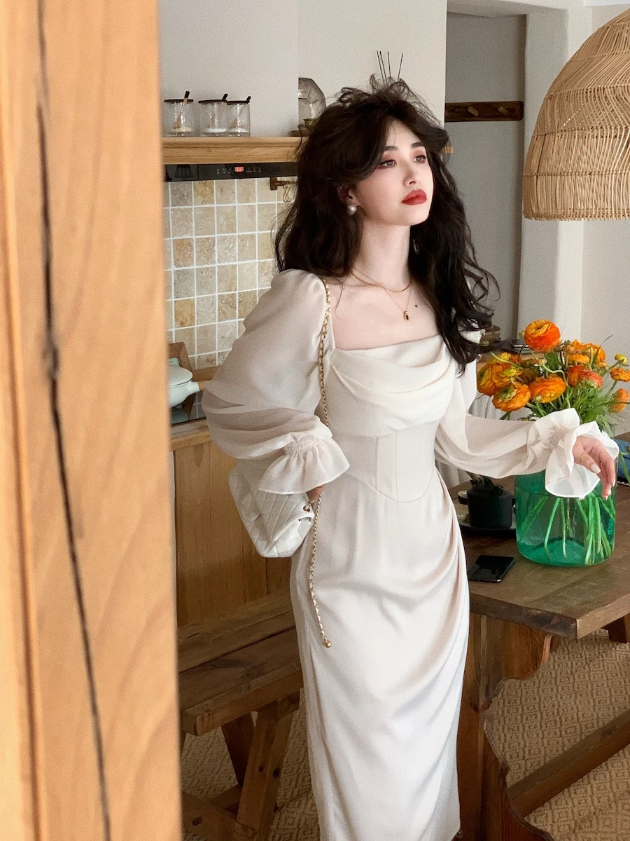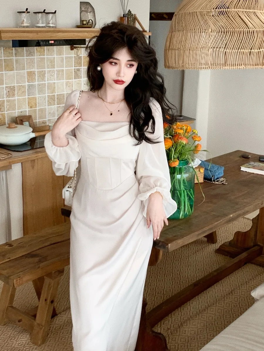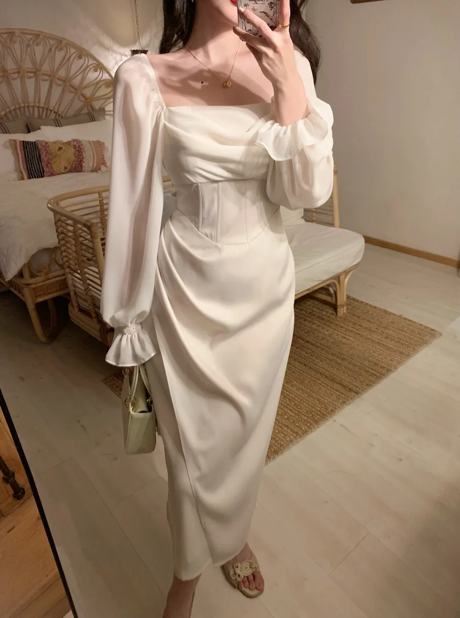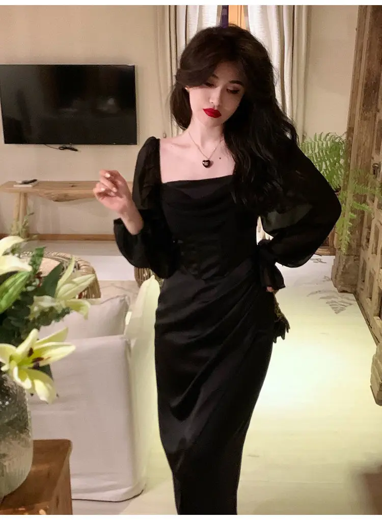 flowersverse Autumn Solid Elegant Fairy Dress Women Casual One Piece Party Midi Dress Female Lace Korean Fashion Vintage Chic Dress New