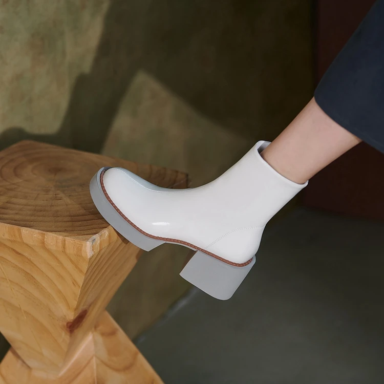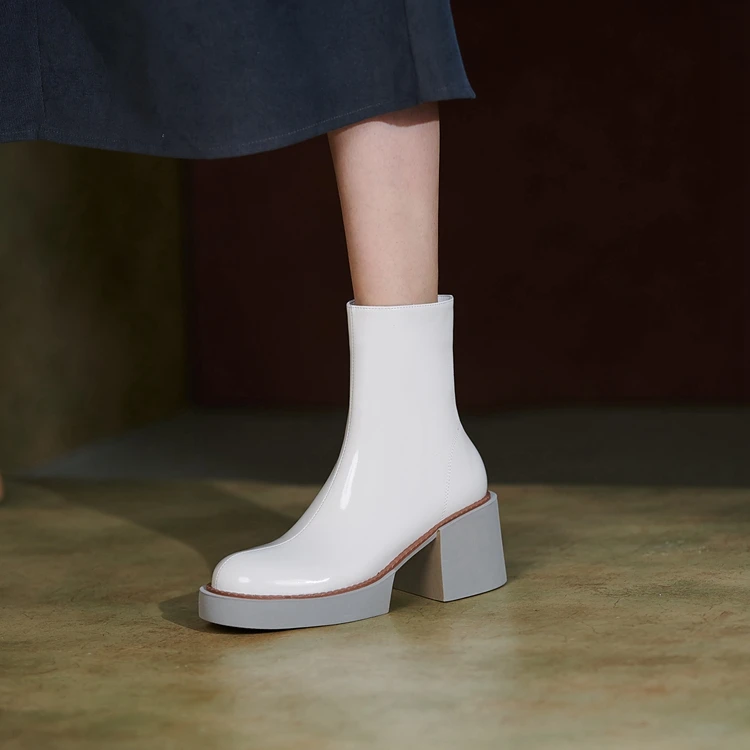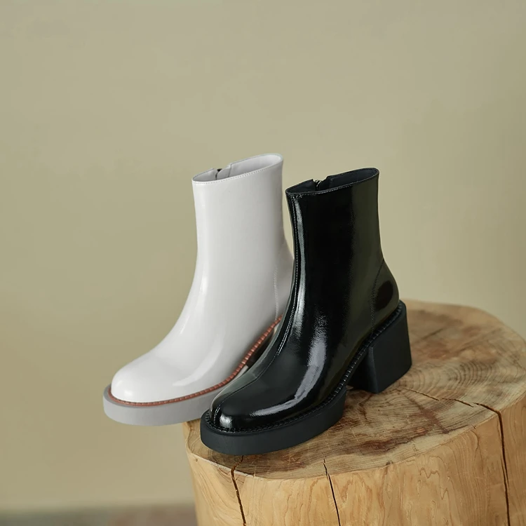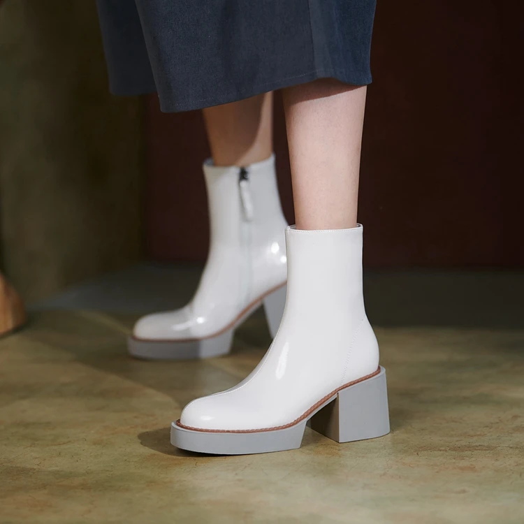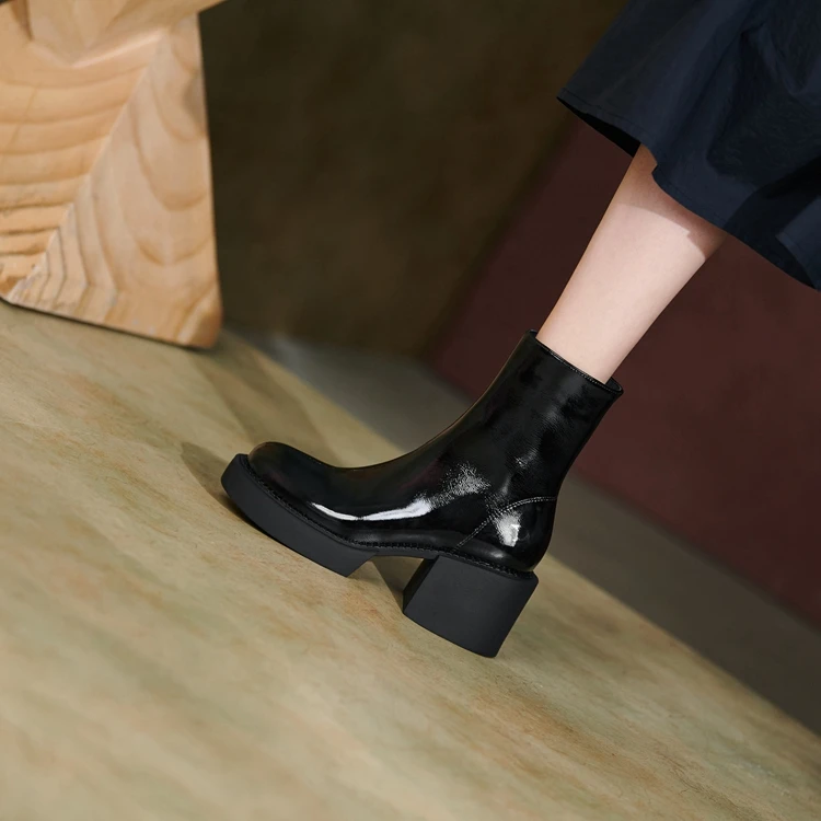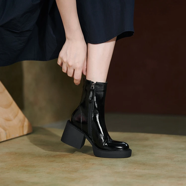 Winter Women Shoes Patent Leather Women Boots Platform Shoes Chunky Boots Women Solid Women Shoes High Heel Boots for Women