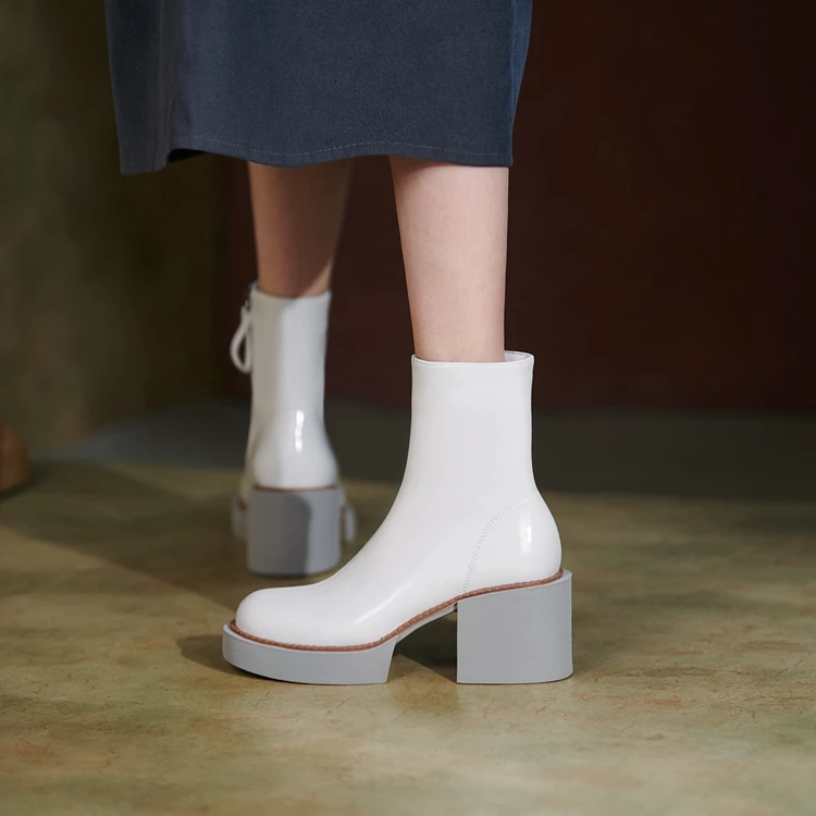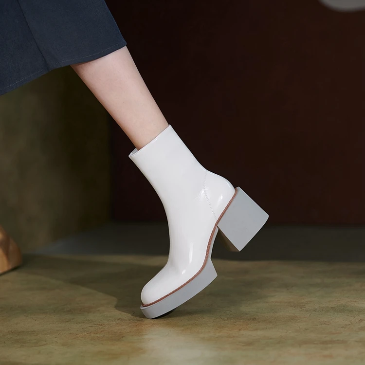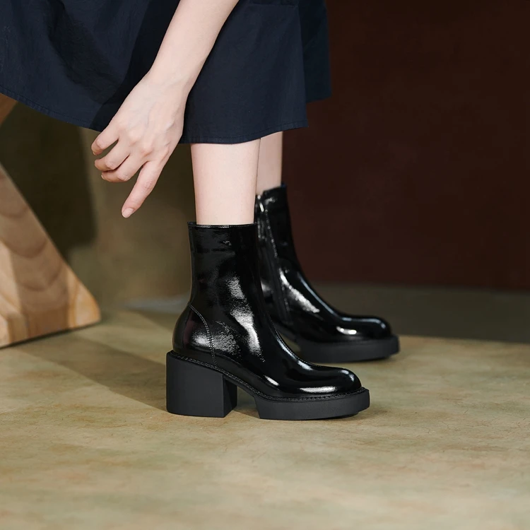 flowersverse HOT SALES Winter Women Shoes Patent Leather Boots Women Autumn Platform Boots Chunky Heel Shoes Women High Heel Boots for Women