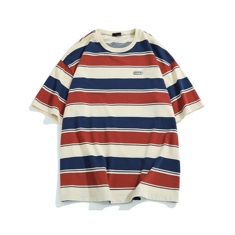 flowersverse Main Striped Couples T-shirts For Men And Women In The Summer Of New Loose Contrast Color Short Sleeve Best Seller