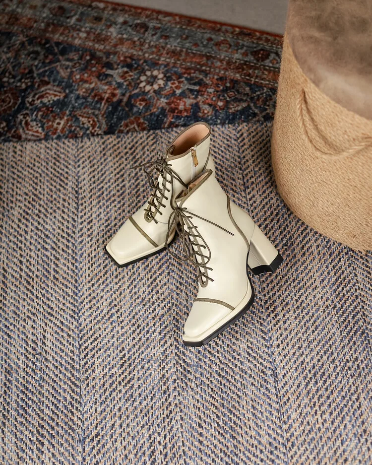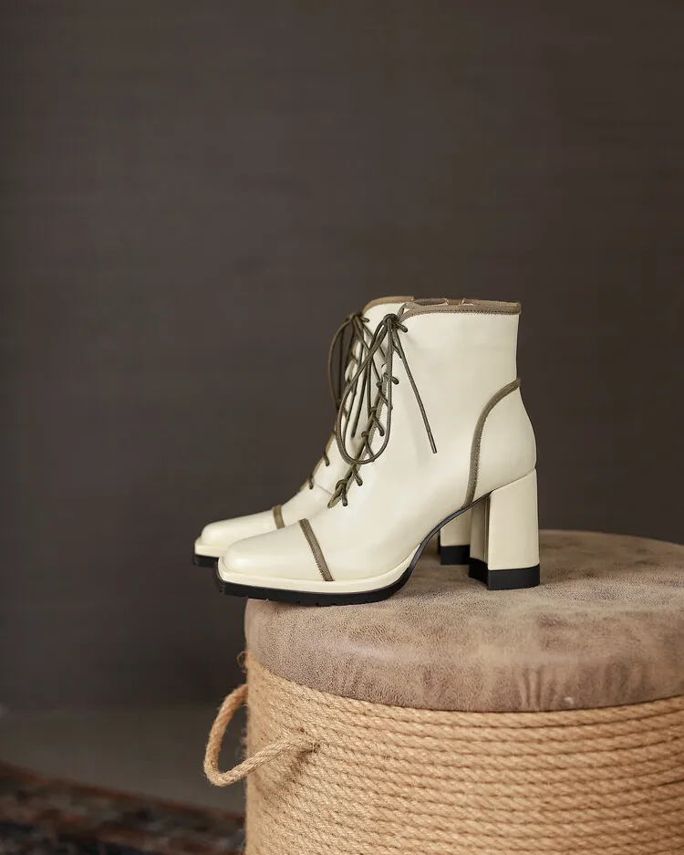 flowersverse NEW Fall Shoes Women Square Toe Chunky Boots for Women Winter Genuine Leather Boots High Heel Platform Boots Elegent Girl Shoes