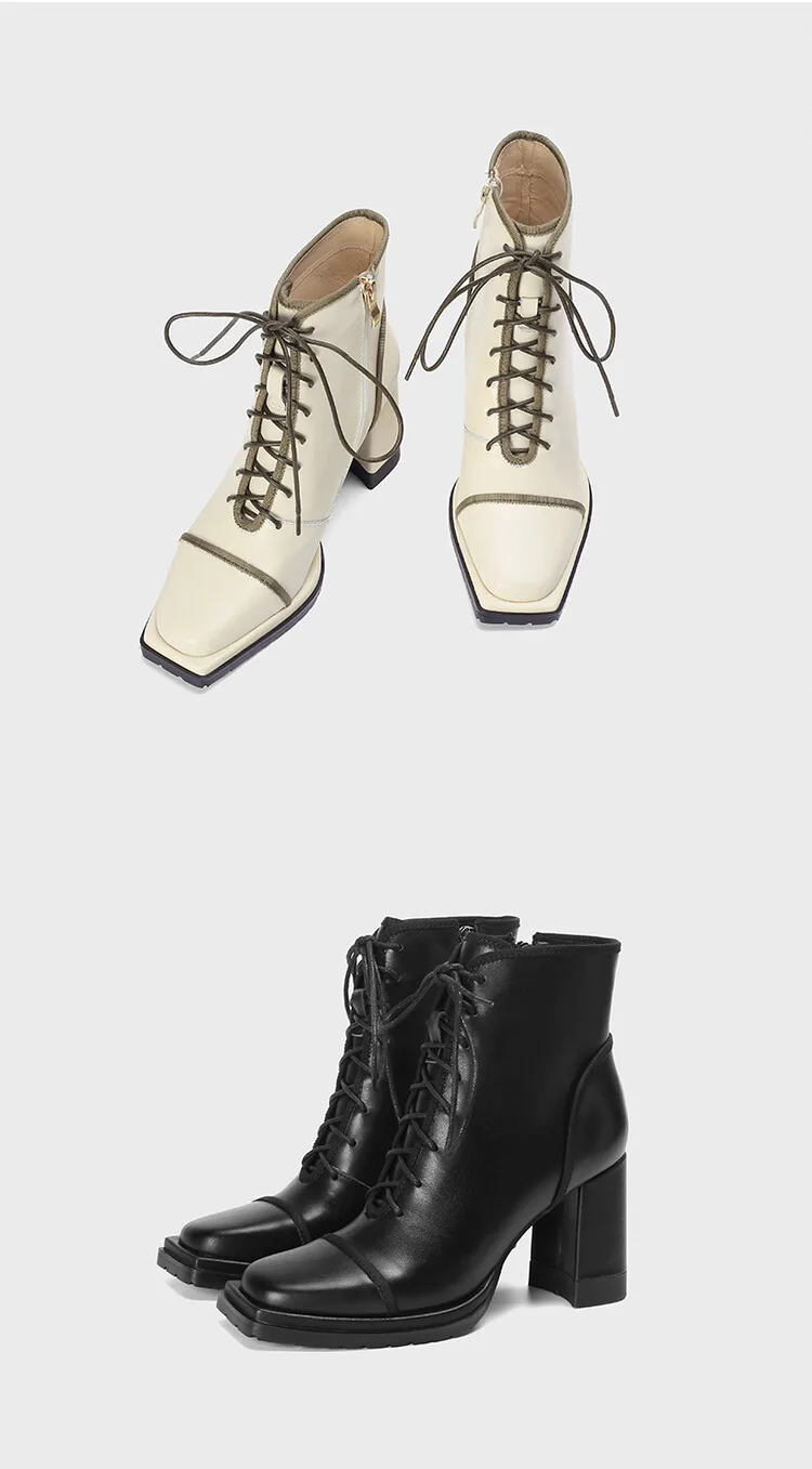 NEW Fall Shoes Women Square Toe Chunky Boots for Women Winter Genuine Leather Boots High Heel Platform Boots Elegent Girl Shoes
