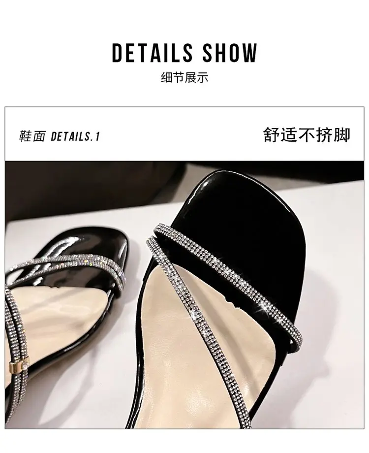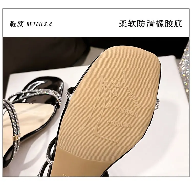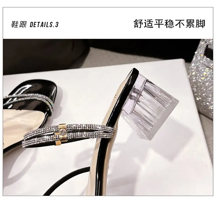 flowersverse New Fashion Summer Crystal Sandals Women Slippers Transparent Solid Color Sequins Middle Heel Square Heel Ladies Slippers