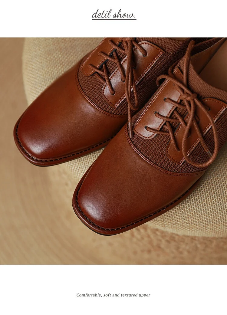 flowersverse NEW Spring Women Pumps Round Toe Chunky Heel Shoes for Women Split Leather High Heels Solid Splicing Lace-up Shoes Handmade Shoe