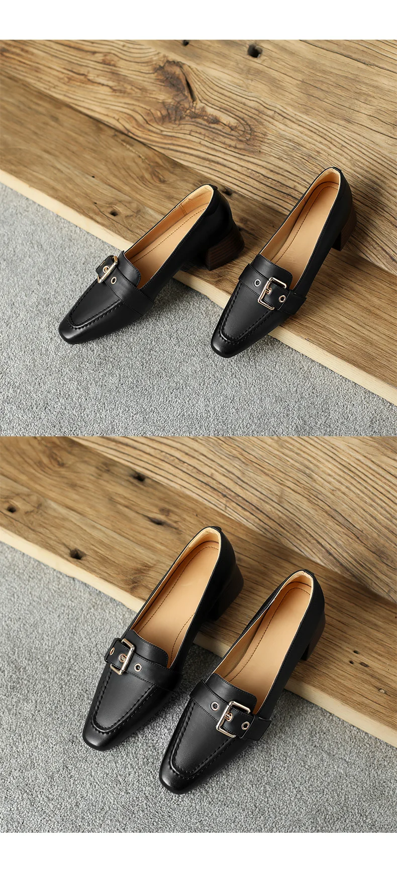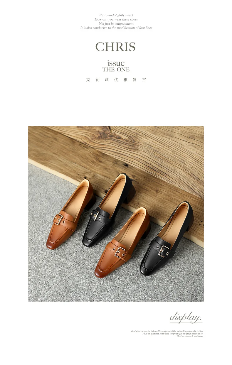 flowersverse new women pumps natural leather 22-25cm length cowhide+pigskin full leather Square toe Buckle Square heel ladies shoes
