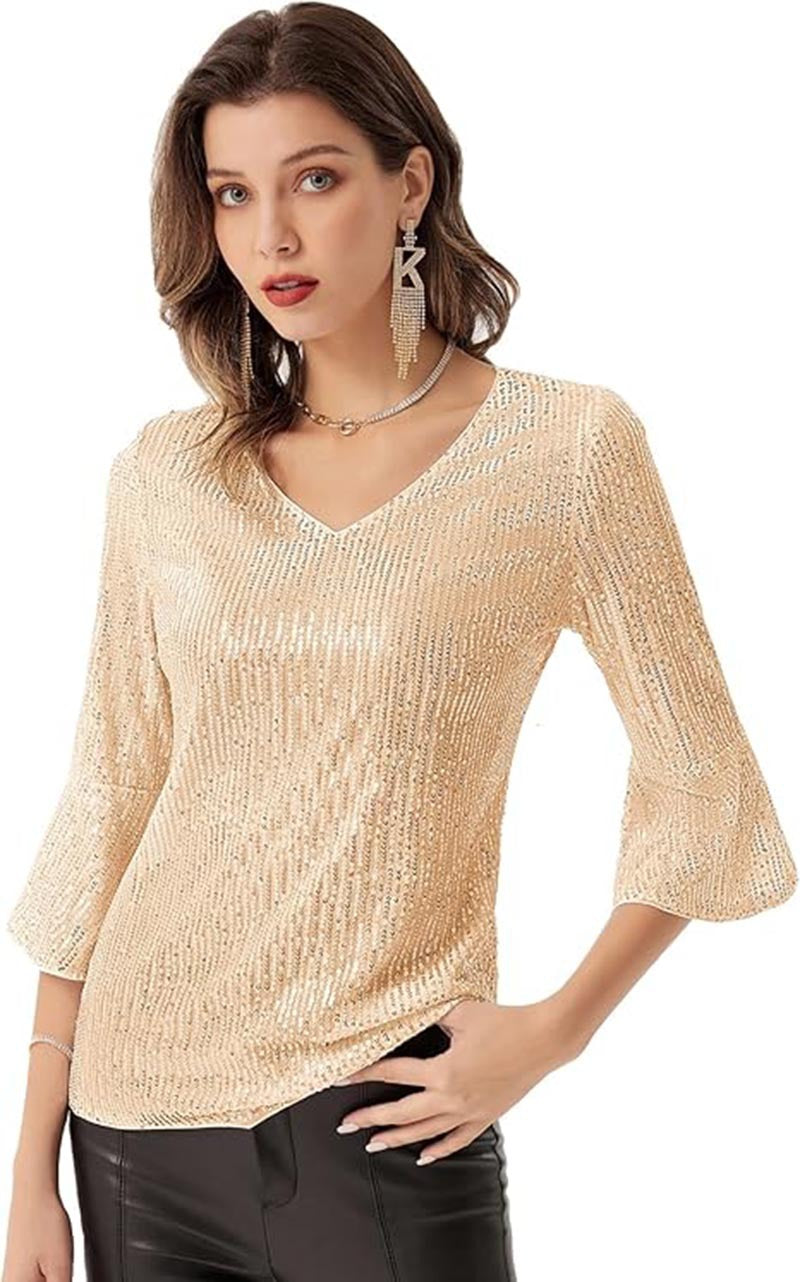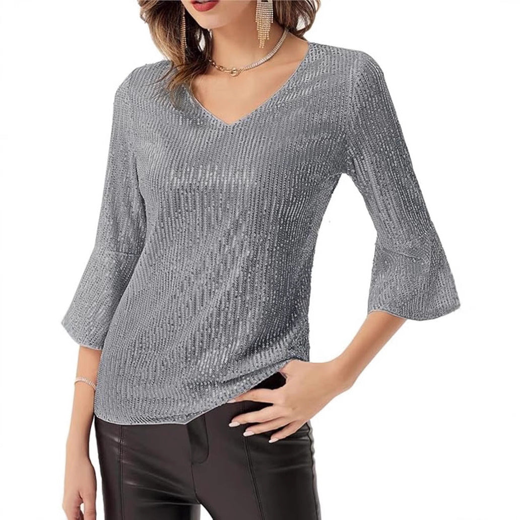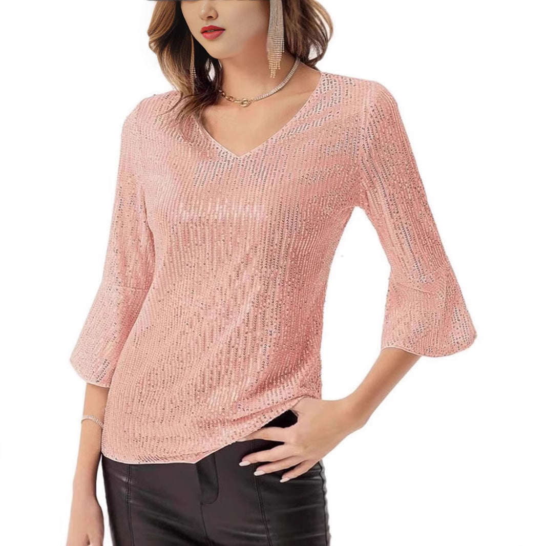 FLOWERSVERSE popular跨境货源外贸欧美女装 亚马逊新款纯色亮片宽松衬衫连衣裙