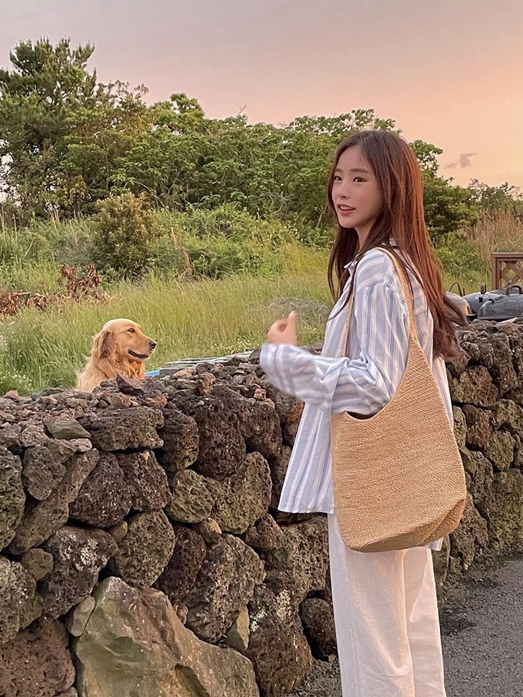 FLOWERSVERSE Raffia Hand-Woven Bag Ins Retro One-Shoulder Hand Straw Bag Vacation Beach Bag Women