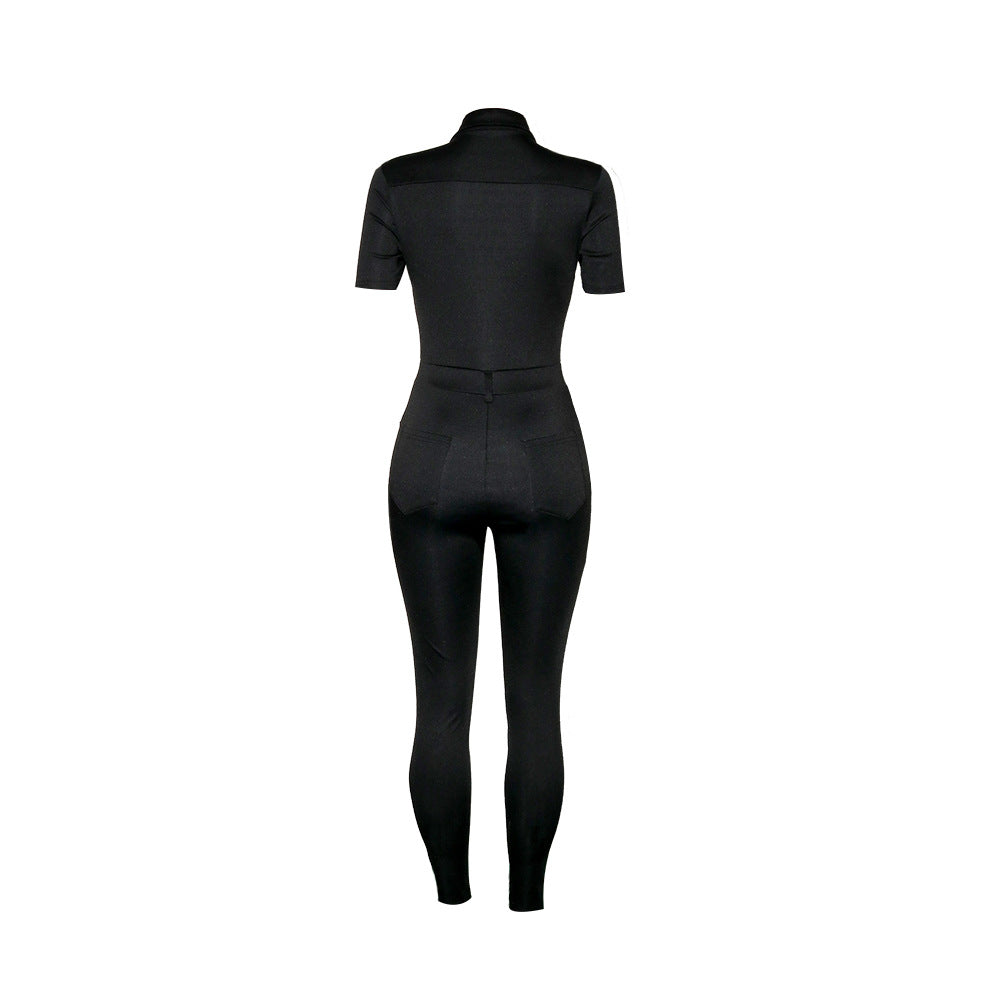 FLOWERSVERSE S390172 Foreign Trade European and American Women's Clothing Casual Solid Color Polo Collar Short Sleeve Single-Breasted One-Piece Trousers for Women