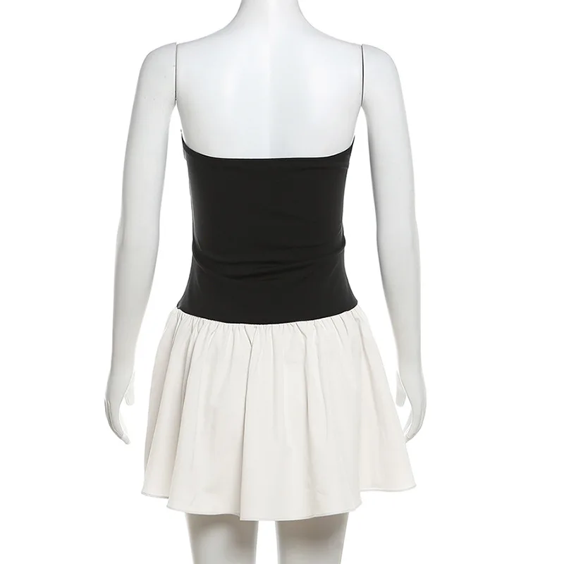 flowersverse-Slim Folds Dress For Women Bodycon Backless Splice Dresses Female Summer Sexy Off Shoulder Elegant Mini Dress Woman 2024