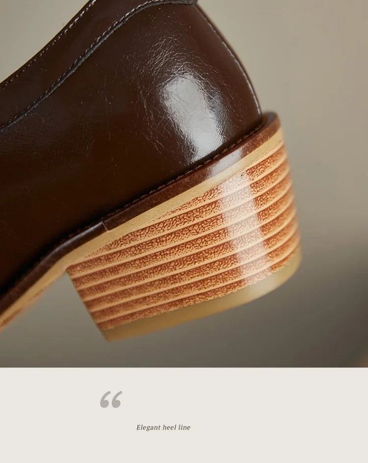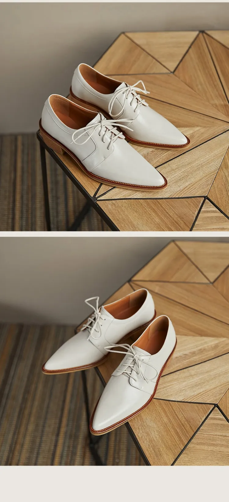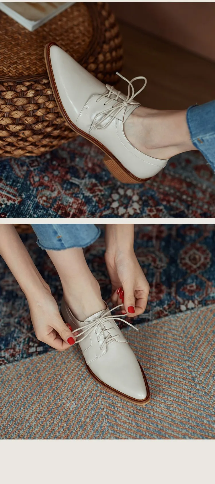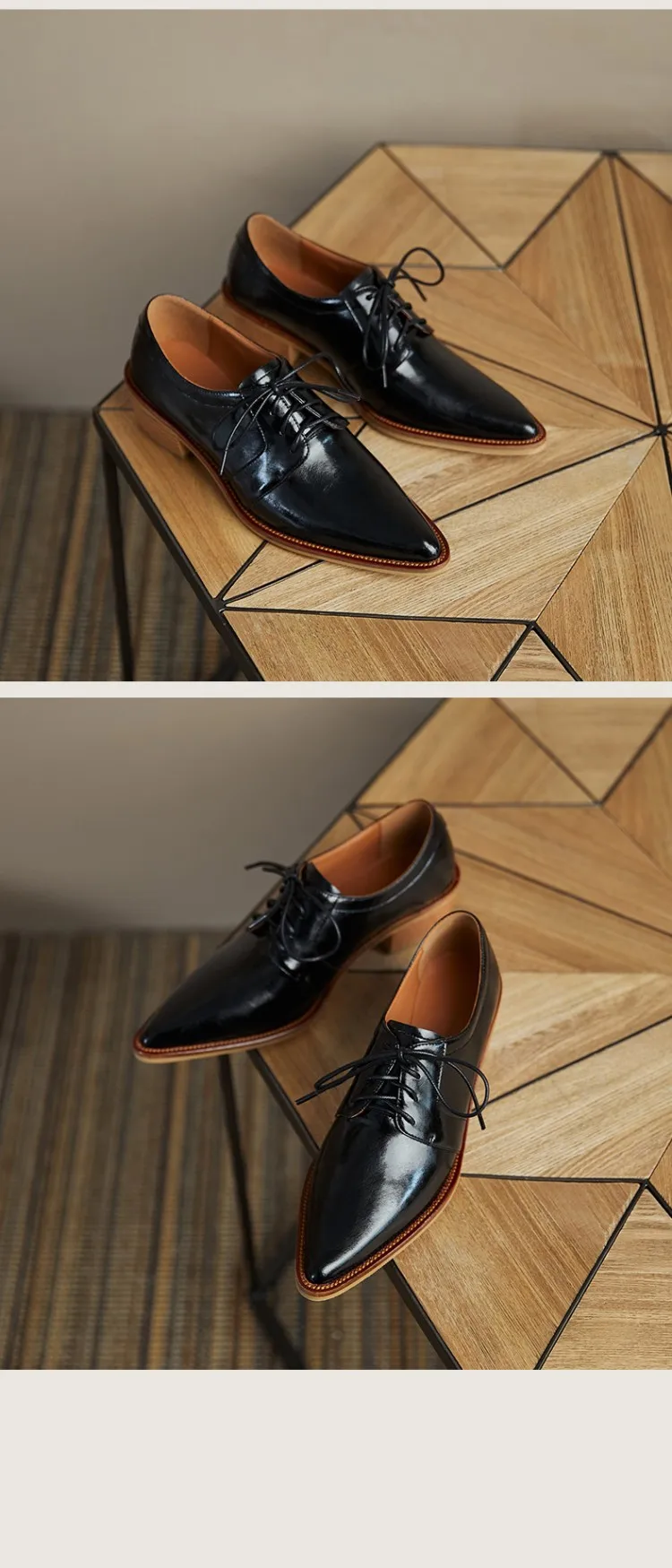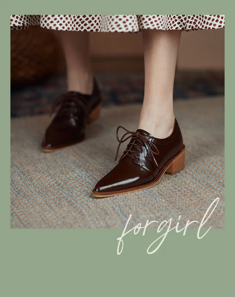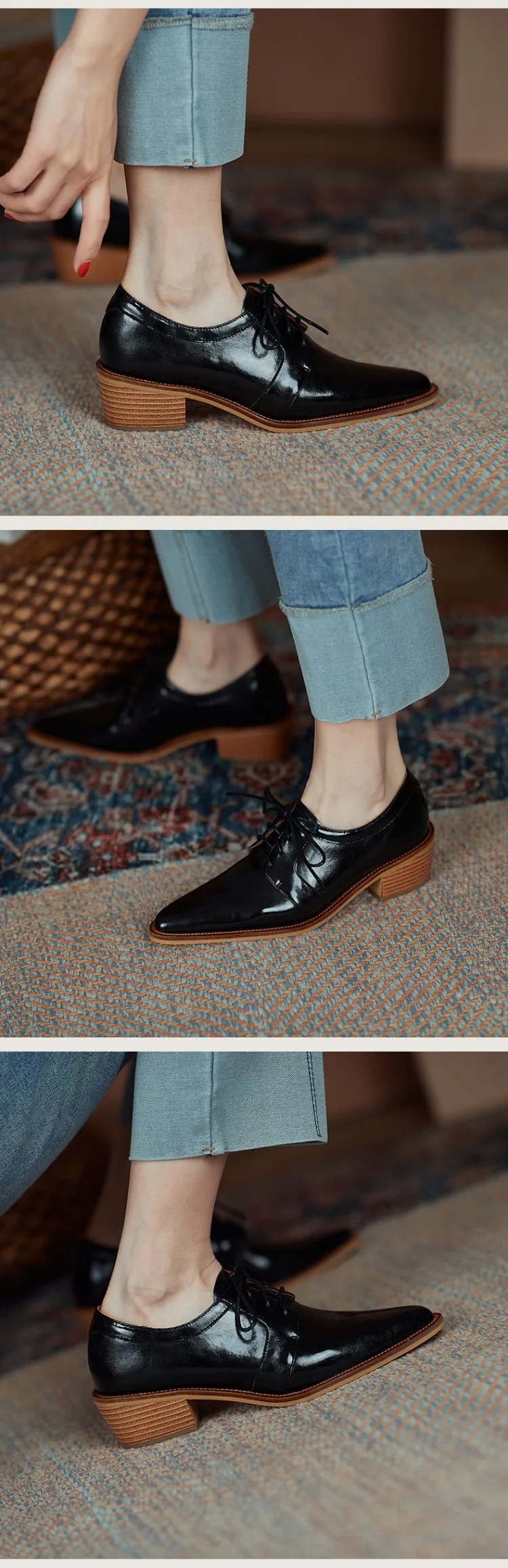 flowersverse Spring/Autumn Women Shoes Split Leather Oxfords for Women Pointed Toe Chunky Heel Women Pumps Ladies Shoes Black Shoes