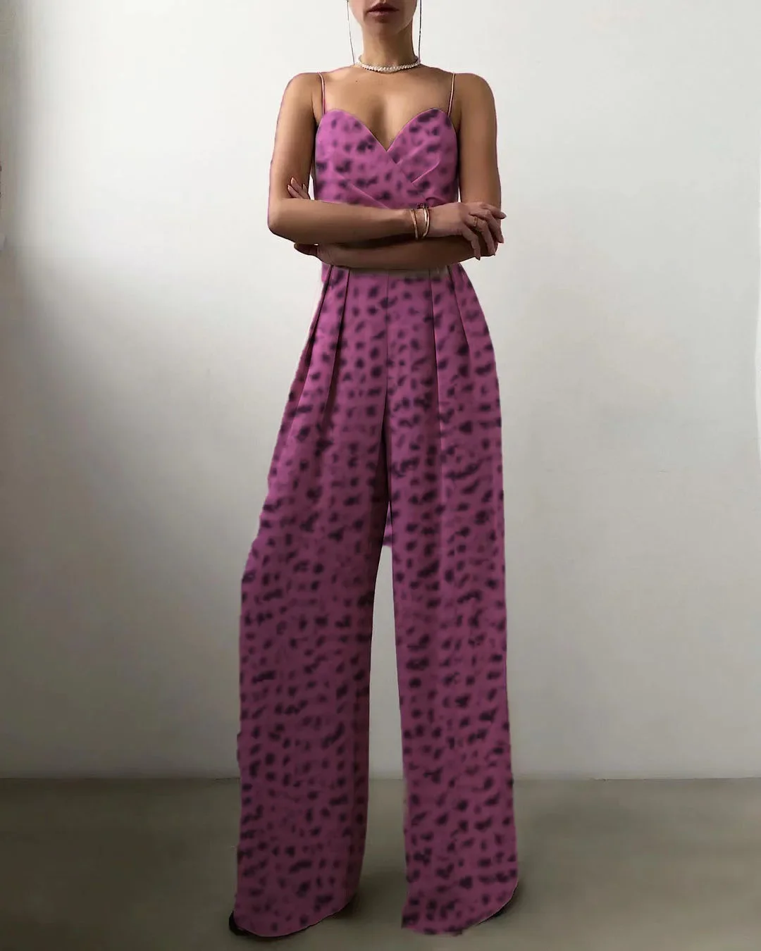 flowersverse-Spring Chiffon Sexy Joker Solid Elegant Spaghetti Strap European and American Women's High Waist Wide Leg Jumpsuits