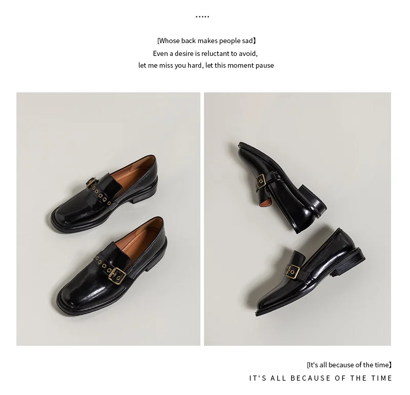 flowersverse spring new pumps Women's shoes 22-25cm natural leather Square toe metal buckle Women heels black shoes heels for women