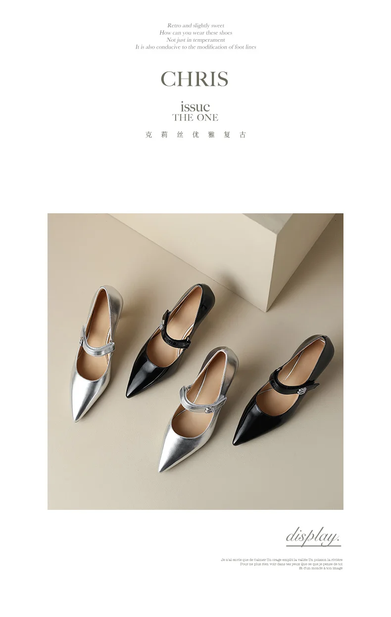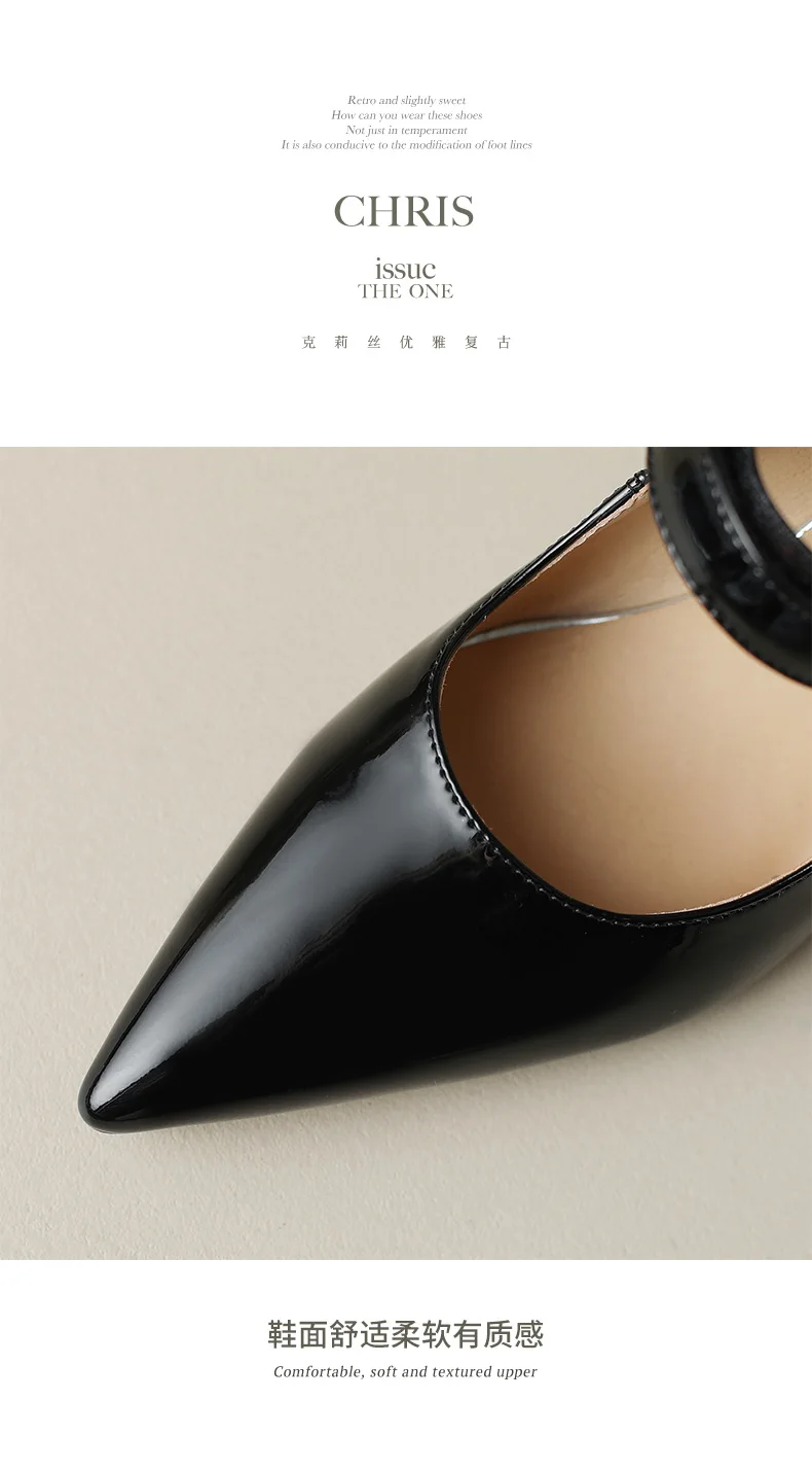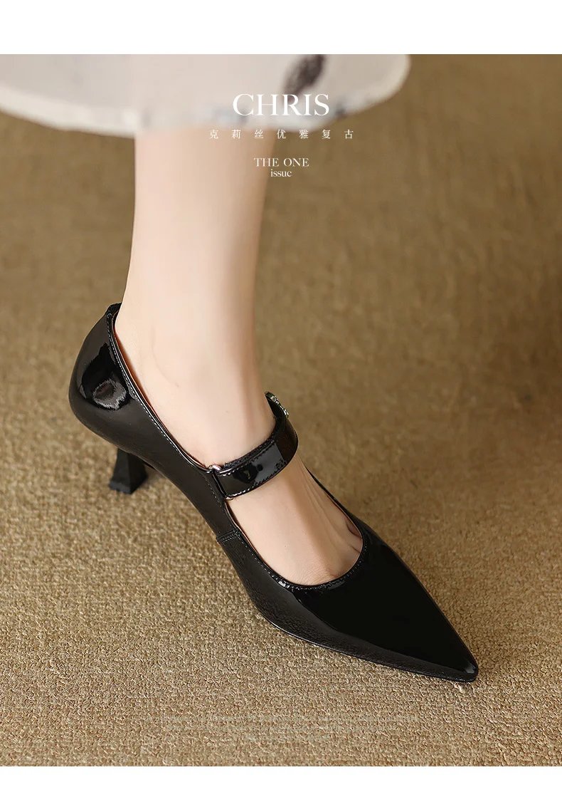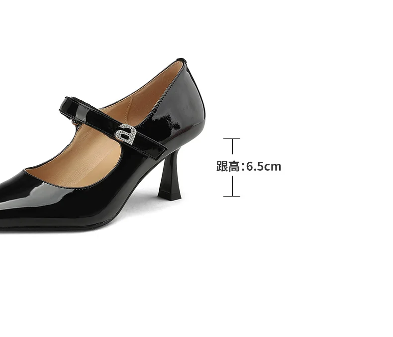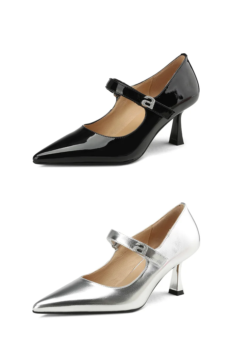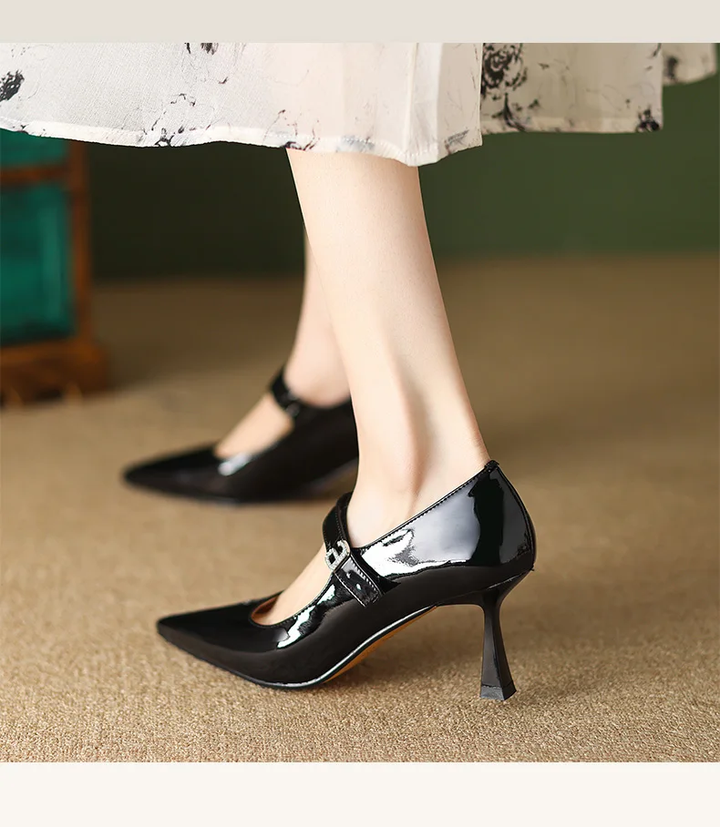 flowersverse Spring women pumps natural leather plus size22-26cm cowhide+pigskin full leather pointed toe buckle Mary Jane shoes high heels