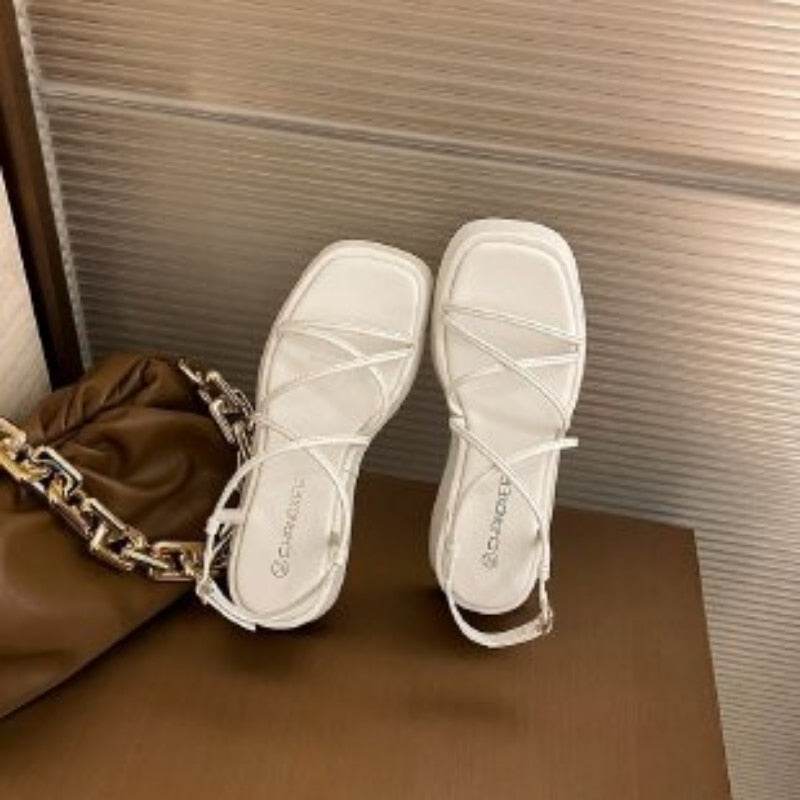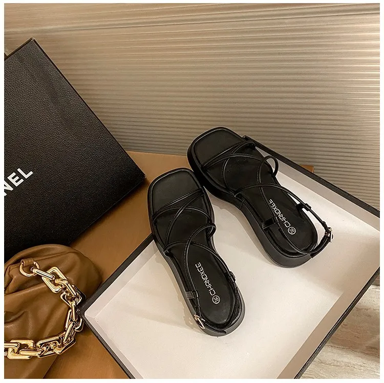 flowersverse Summer Women's Sandals Wedges High Heel Outdoor Platform Heightening Modern Sandals Simple Thin Strap Combination Design Sandals