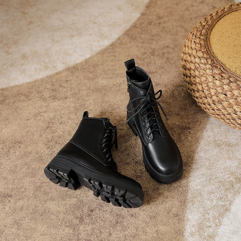flowersverse Women Short Boots Exquisite Ankle Autumn Spring Thick Sole Lace Up Lady Short Boots Zipper Elastic Slender Knight Boots
