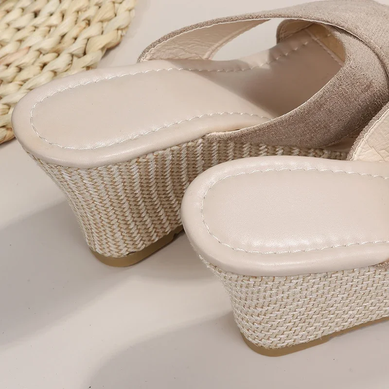 flowersverse-Women's Slippers Ladies Casual Platform Wedges Sandals Fashion Open Toe Straw Braid Rome Sandals Size 35-40 Female Beach Sandals