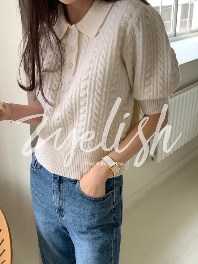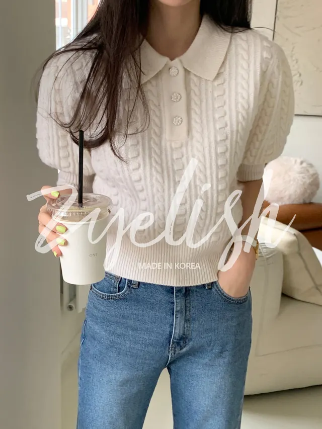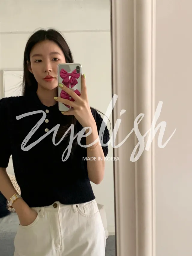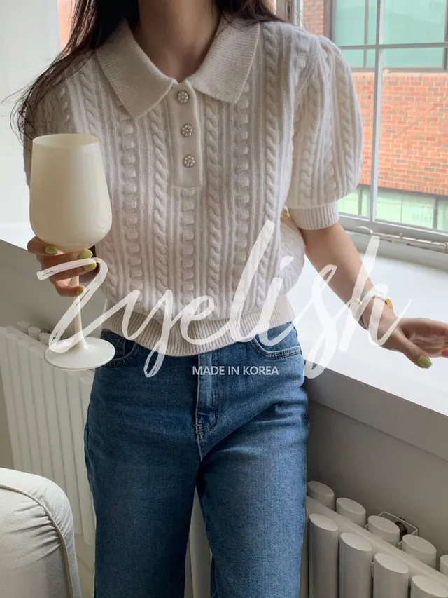 flowersverse Back to school outfit Elegant Knit Cardigan Korean Chic Summer Temperament Simple Pearl Buckle Csual Short Sleeve Thin Short Sweater Top