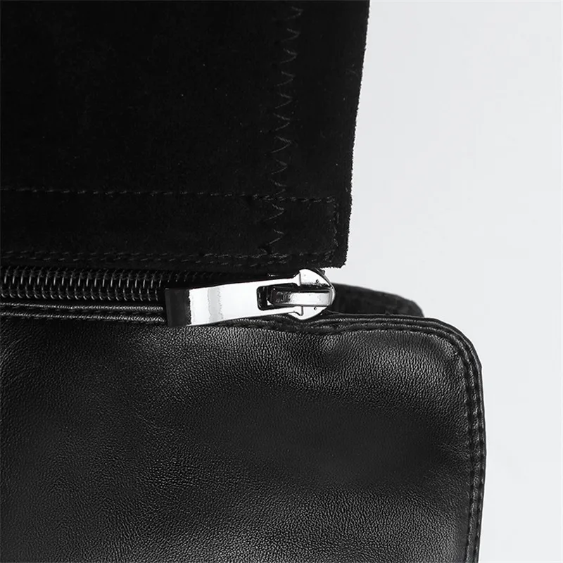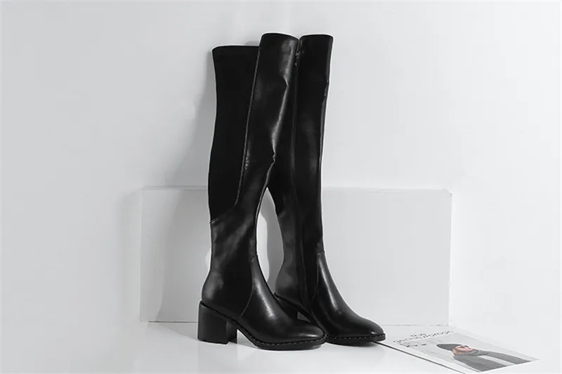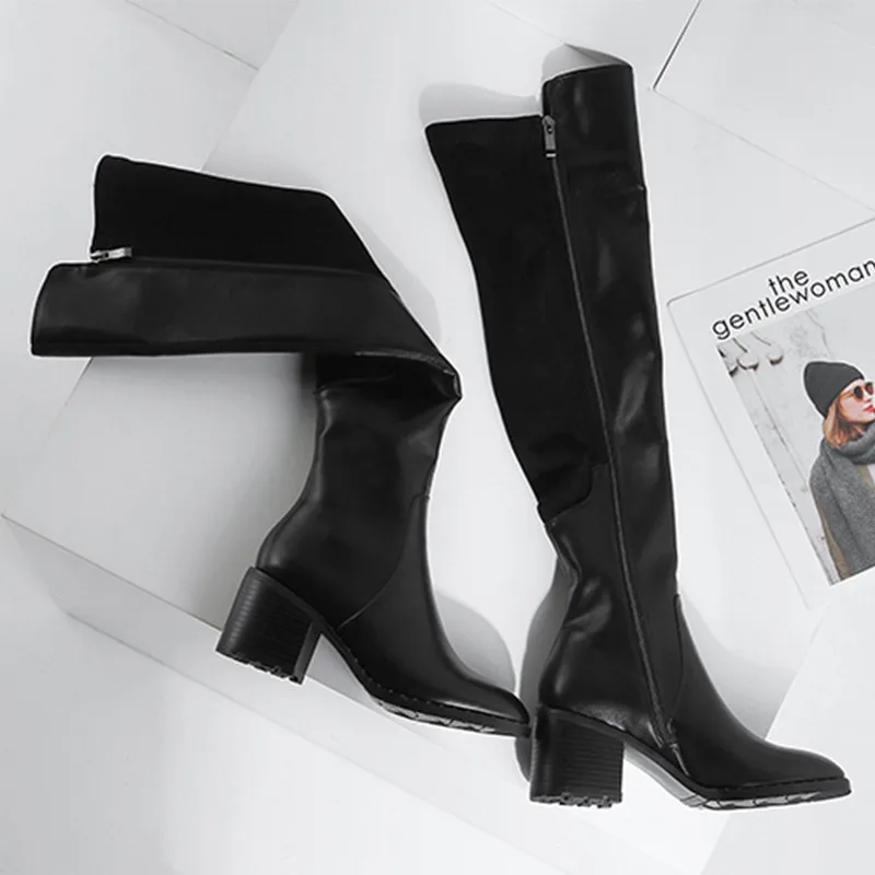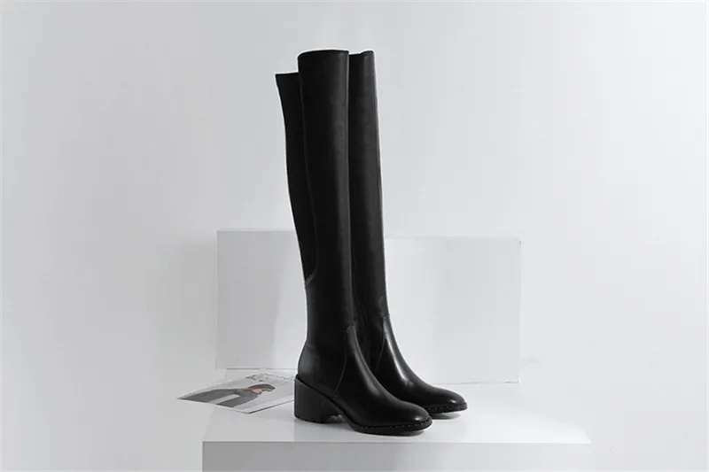 Amozae Genuine Leather Women's High Boots Fashion Slip-On Over-The-Knee Women Boots 2023 Autumn Winter Flock Round Toe Stretch Boots