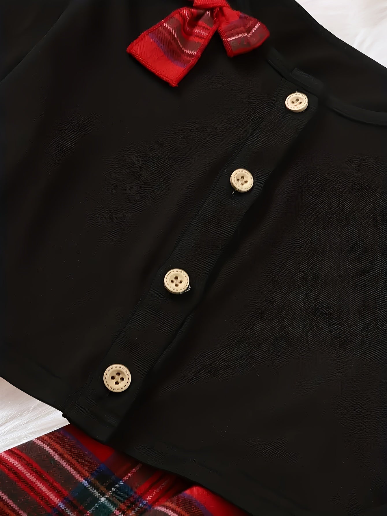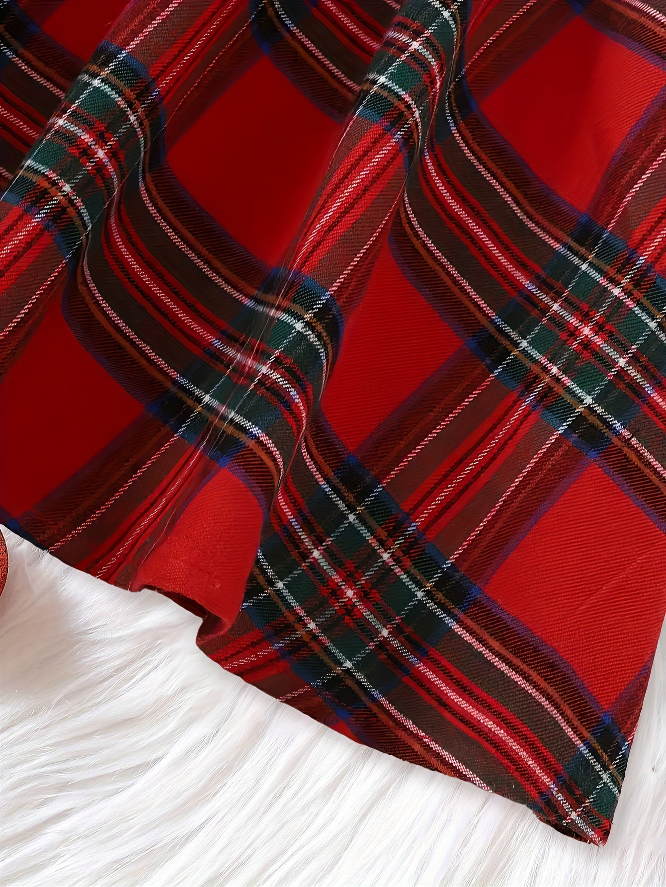 Girls' Casual And Fashionable Christmas Party Plaid Two-Piece Skirt, All-Match for Autumn And Winter
