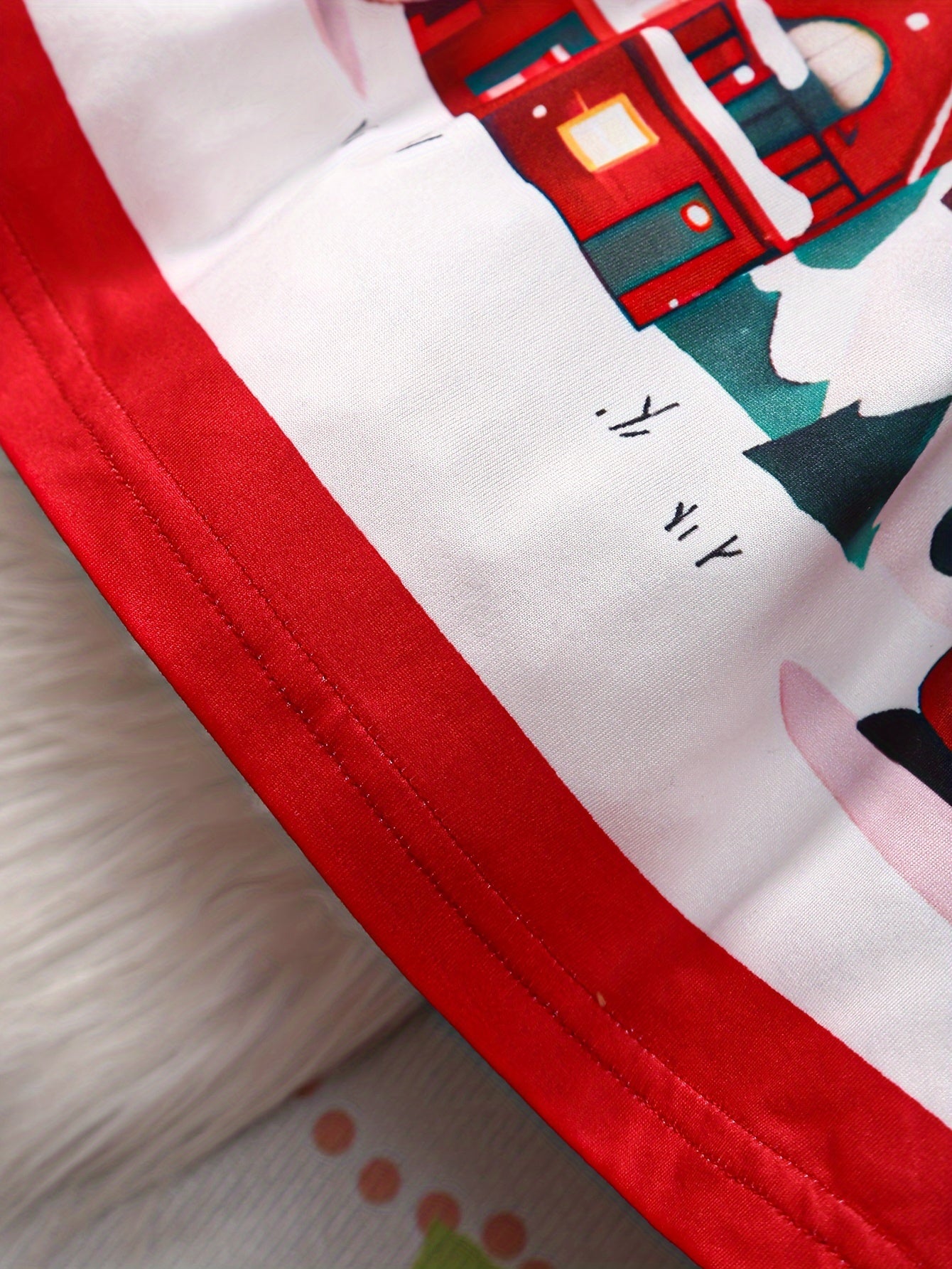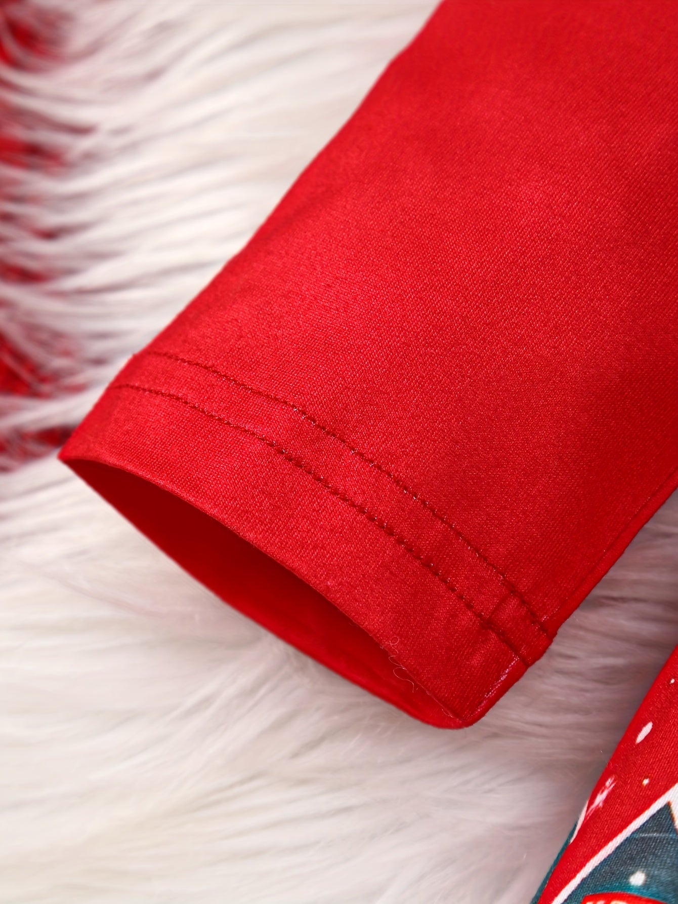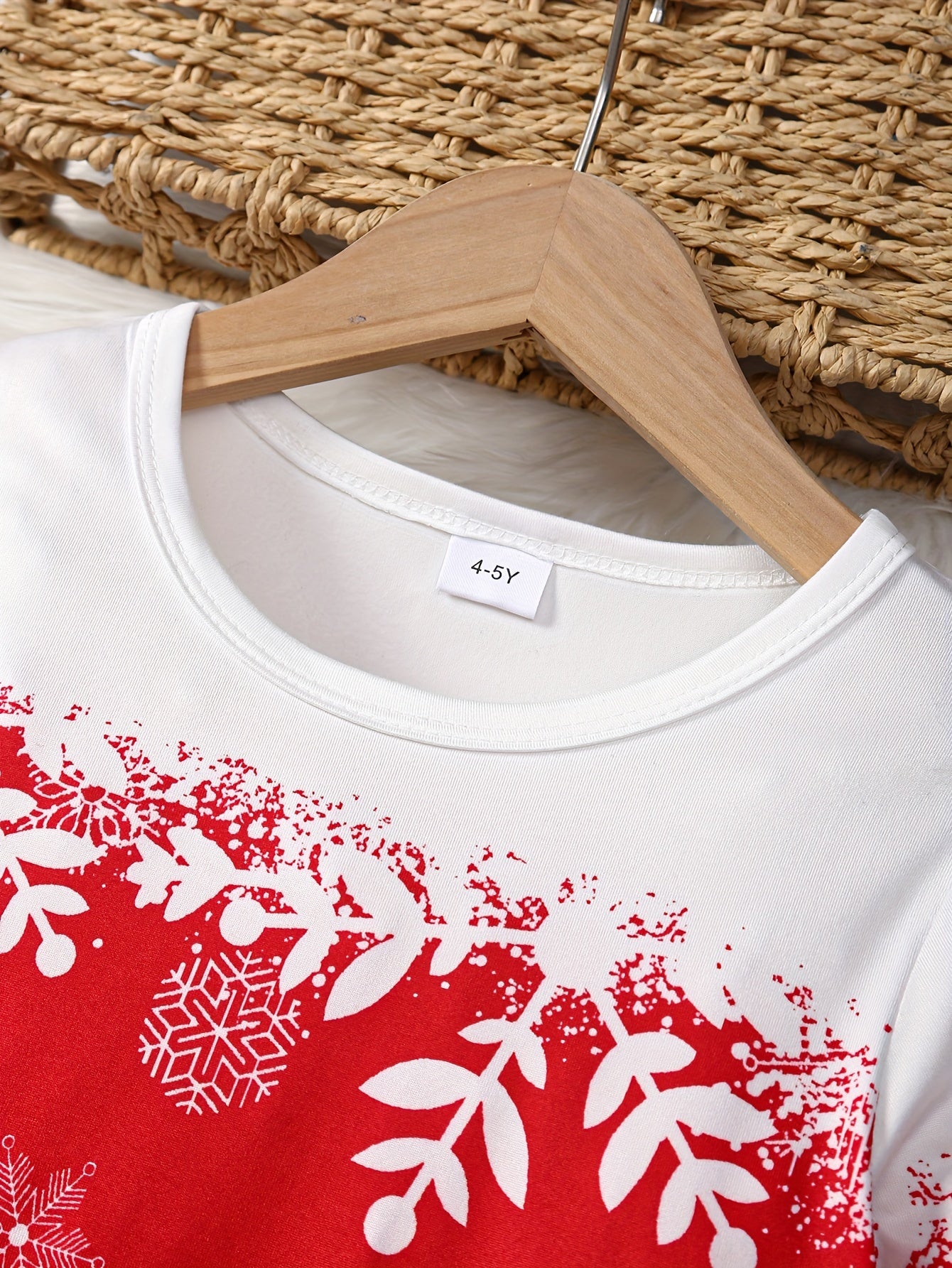 Girls' Christmas Dress, Long Sleeve, Round Neck, Stretchy Snowflake & Santa Print, Party Style, Polyester Knit, Regular Fit, All-Season, Children's Holiday Dress