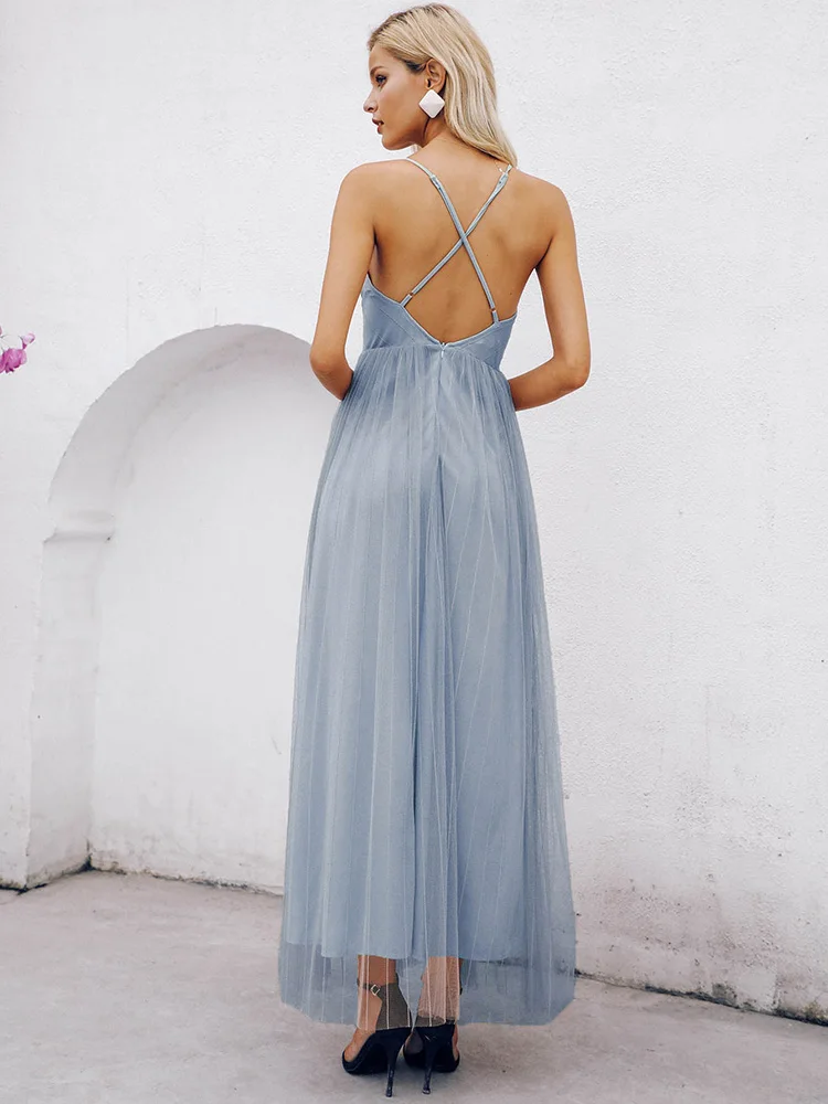 Graduation Gift Big Sale Mesh backless pink lace women blue party long dress summer Elegant v-neck even maxi dresses split long vestido