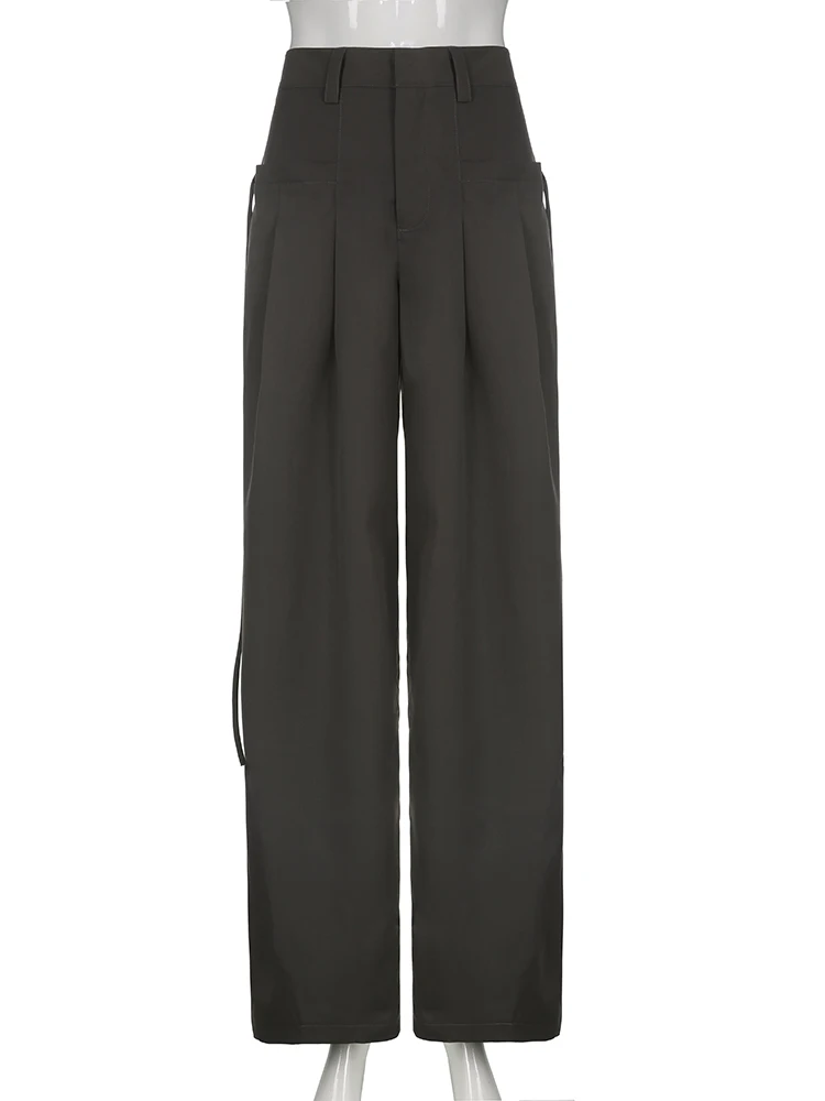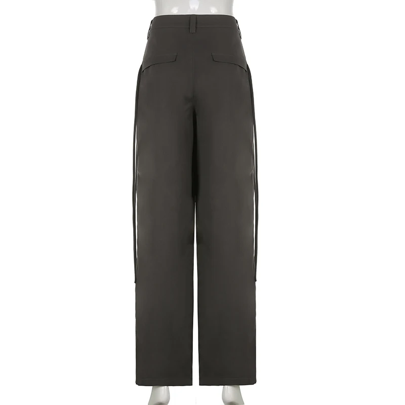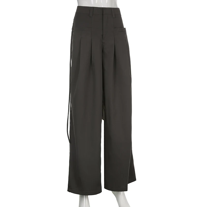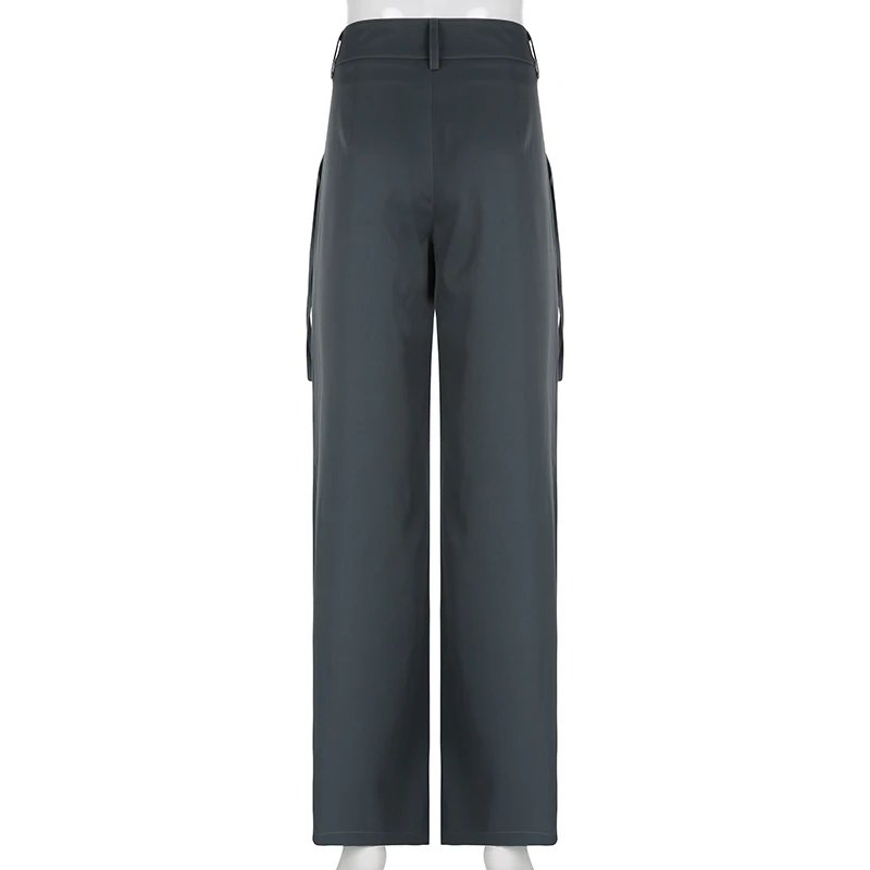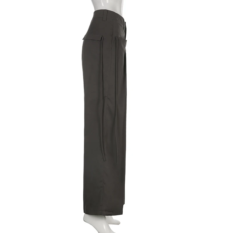 Grey Cargo Pants Korean Fashion Lace Up Pocket Low Rise Casual Pants Women Streetwear Sweatpants y2k Aesthetic Trousers