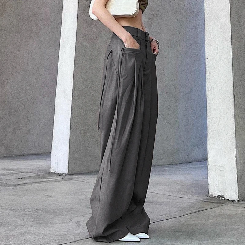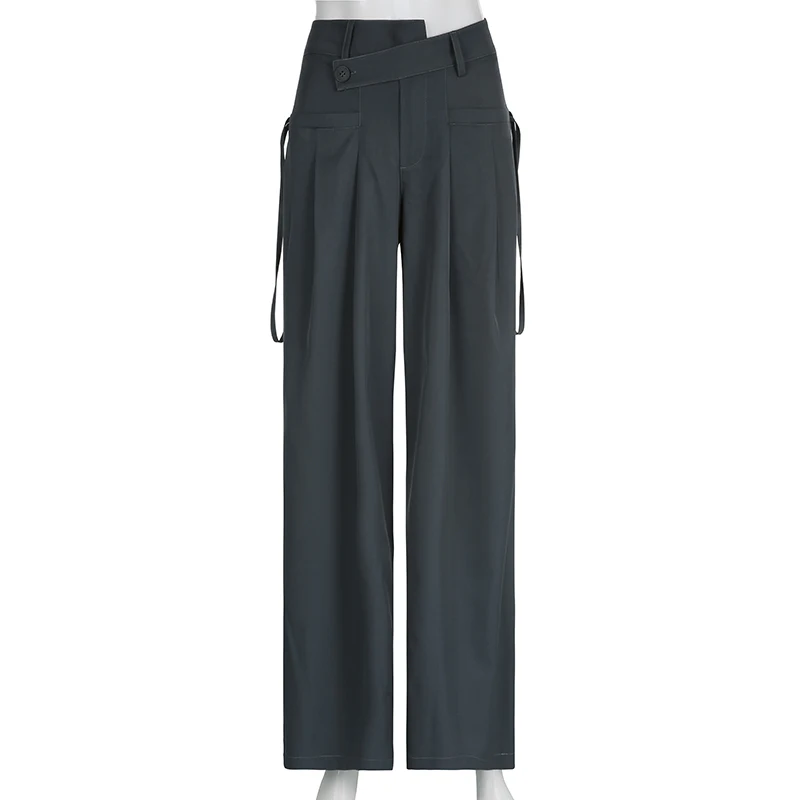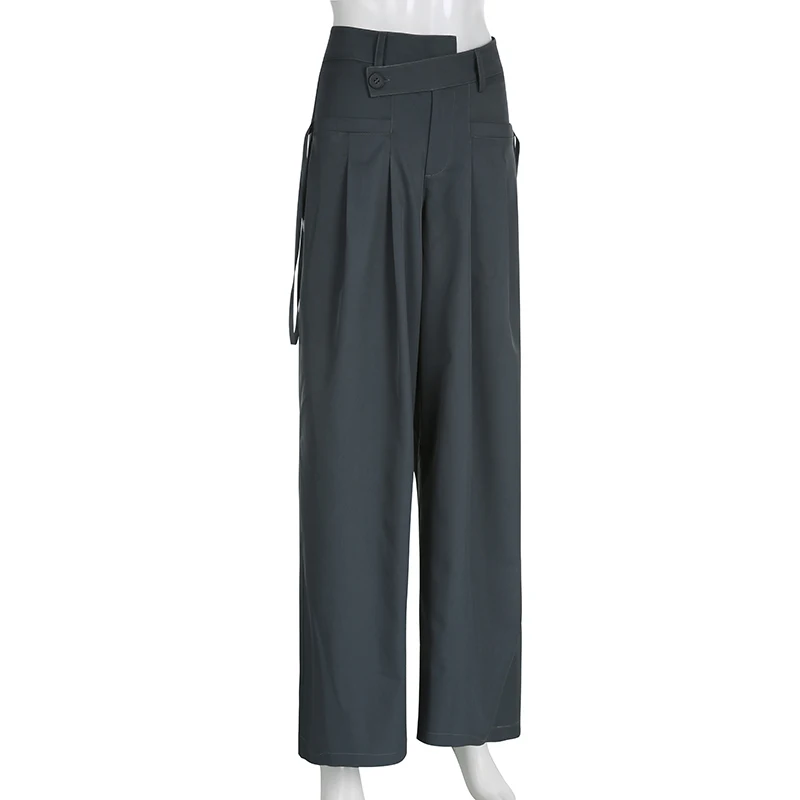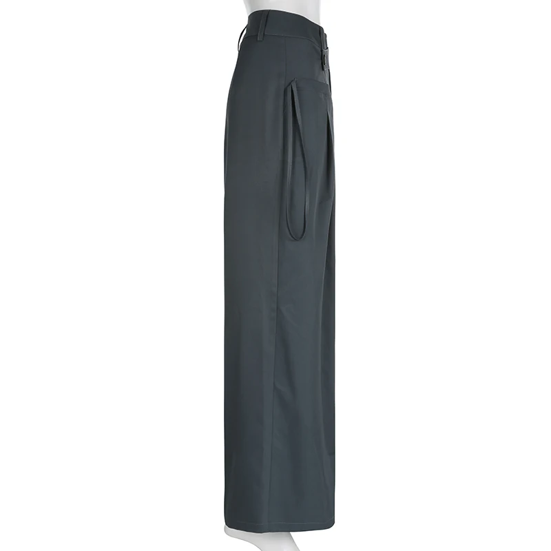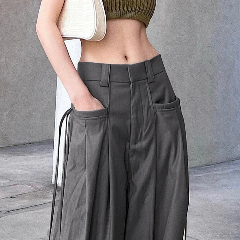 Grey Cargo Pants Korean Fashion Lace Up Pocket Low Rise Casual Pants Women Streetwear Sweatpants y2k Aesthetic Trousers