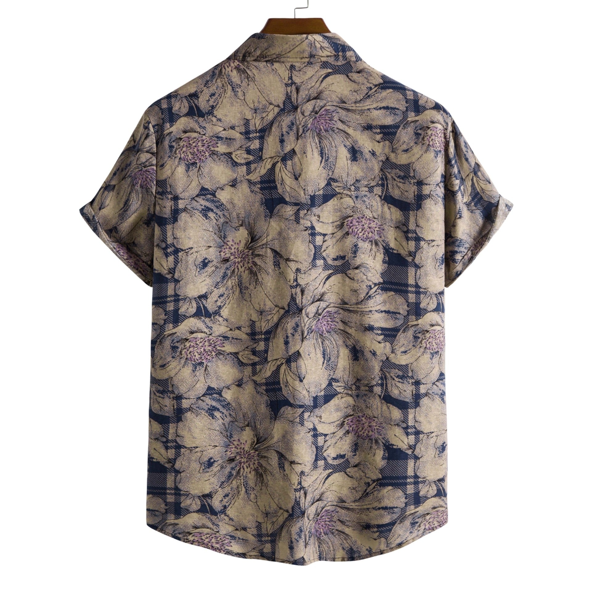 flowersverse Mens Vintage Button Up Cotton Linen Shirts Slim Fit Short Sleeve Hawaiian Floral Shirt Men Harajuku Streetwear Casual Camisas