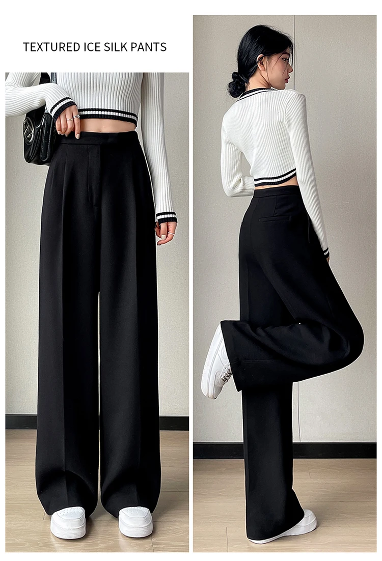 Autumn Slim High Waist Straight Women's Pants Casual Solid Color Loose Chic Female Wide Leg Pants Fashion Office Ladies