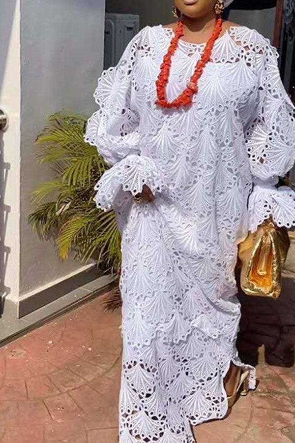 namcoverse Lace Cutout Glamorous Tiered Maxi Dress