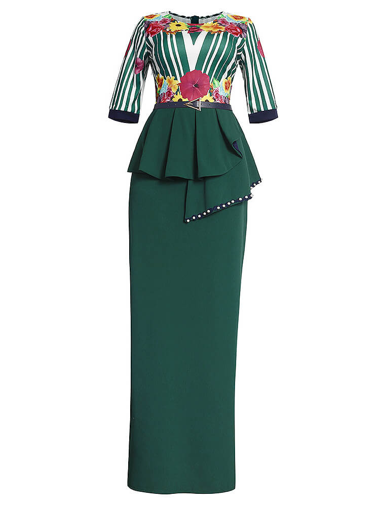 Feature: Floral print, long sleeve, striped, ruffle, pearl, bodycon, asymmetrical, maxi dresses, with the belt.