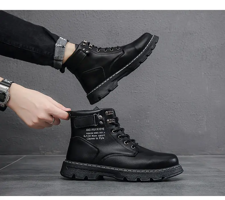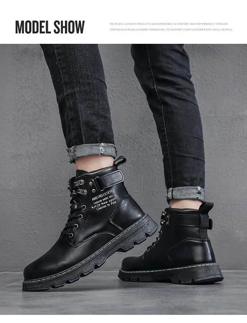 Thanksgiving flowersverse Men Leather Shoes High Top Fashion Winter Warm Snow Shoes Dr. Motorcycle Ankle Boots Couple Unisex Boots