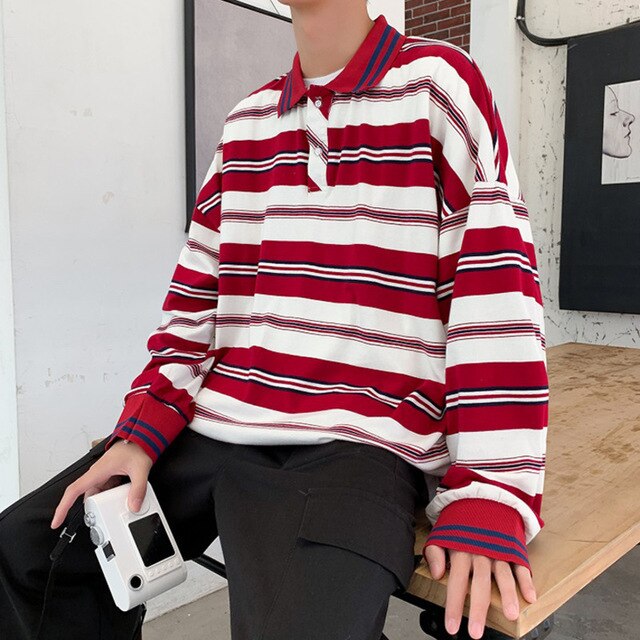 flowersverse Men Polo Shirt Men's Casual Cotton Male Oversized Top Tees Autumn Long Sleeve Turn-down Collar Loose Polo Shirts