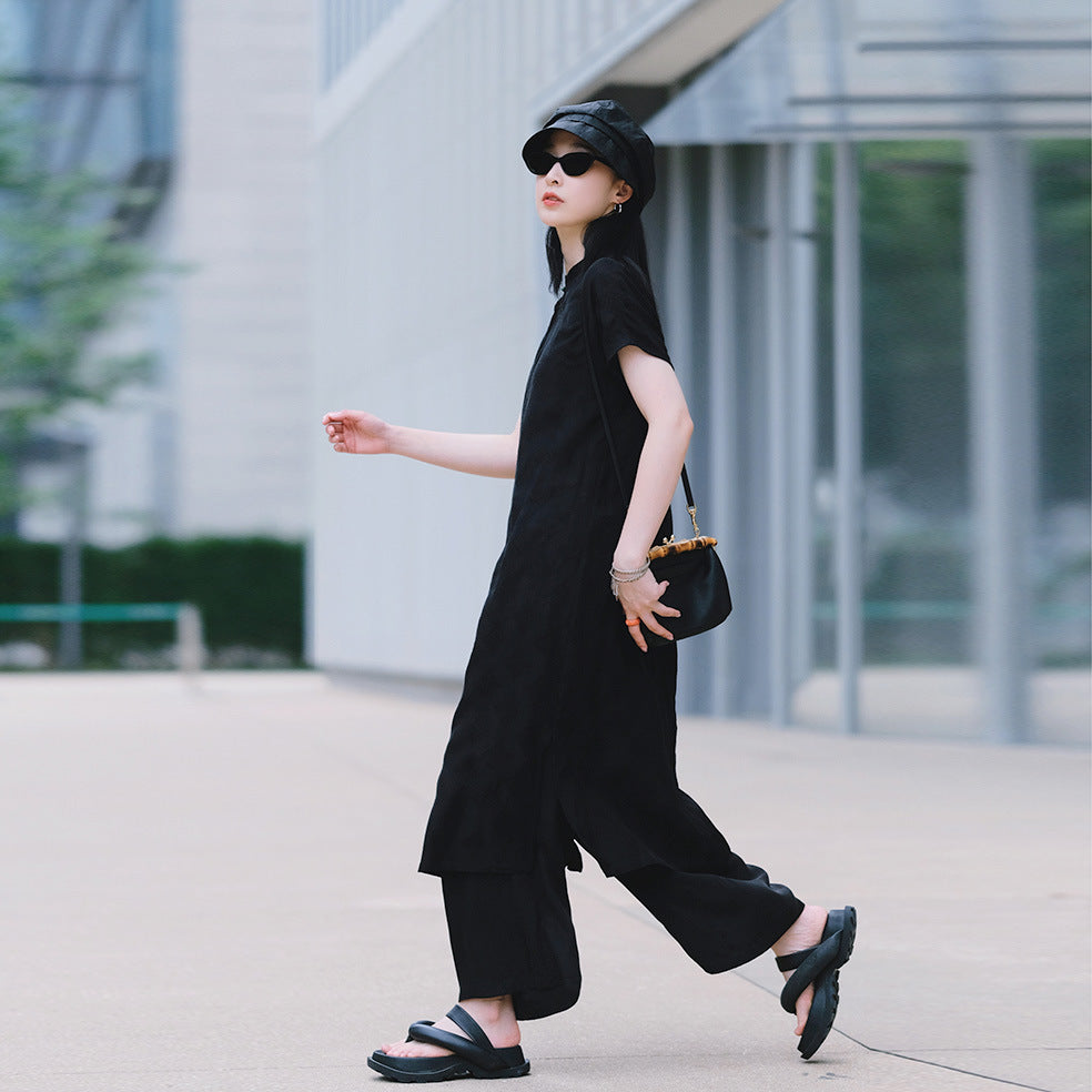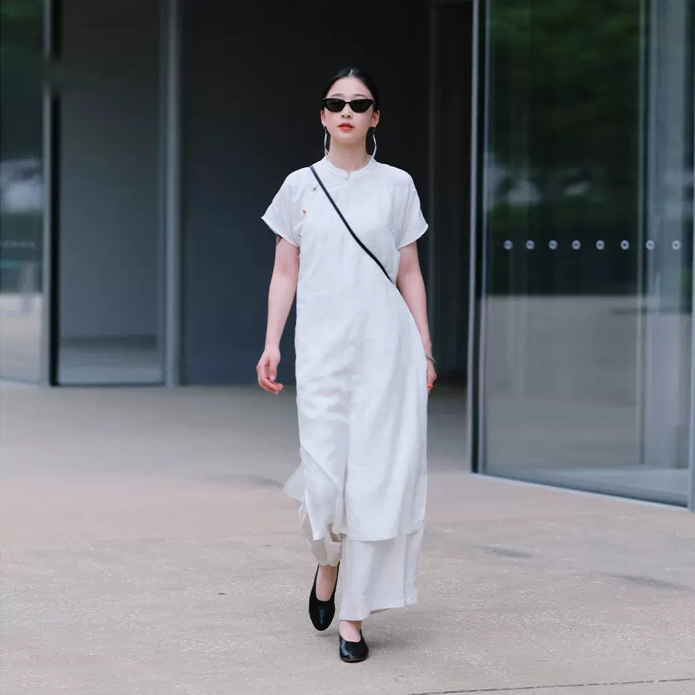 New Chinese dress women's spring and summer, Tencel hemp improved cheongsam dress, retro temperament split two colors B0451