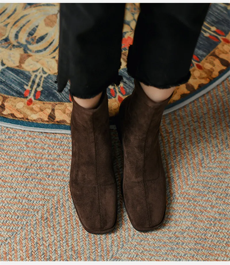 flowersverse New Flock Women Boots Autumn Winter LEISURE ZIP Chunky Heel Platform Boots Ankle Boots Zapatos De Mujer Women Shoes Basic Shoes