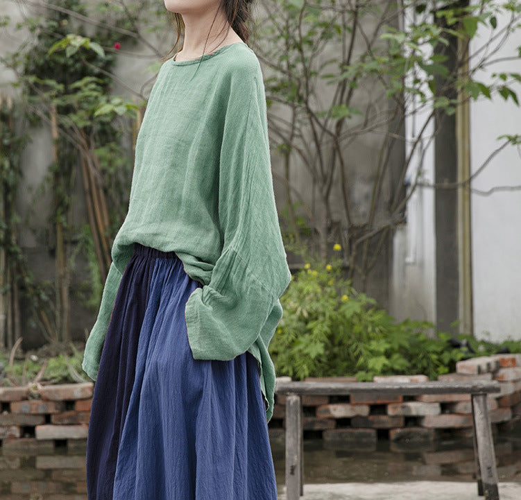 New Summer Simple Design Breathable and Comfortable Sunscreen T-Shirt Ramie Yarn Clear Versatile Top