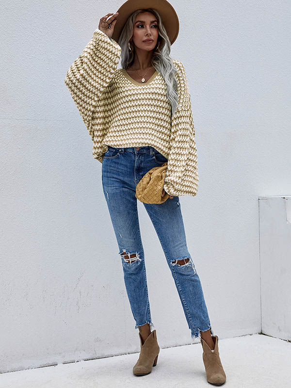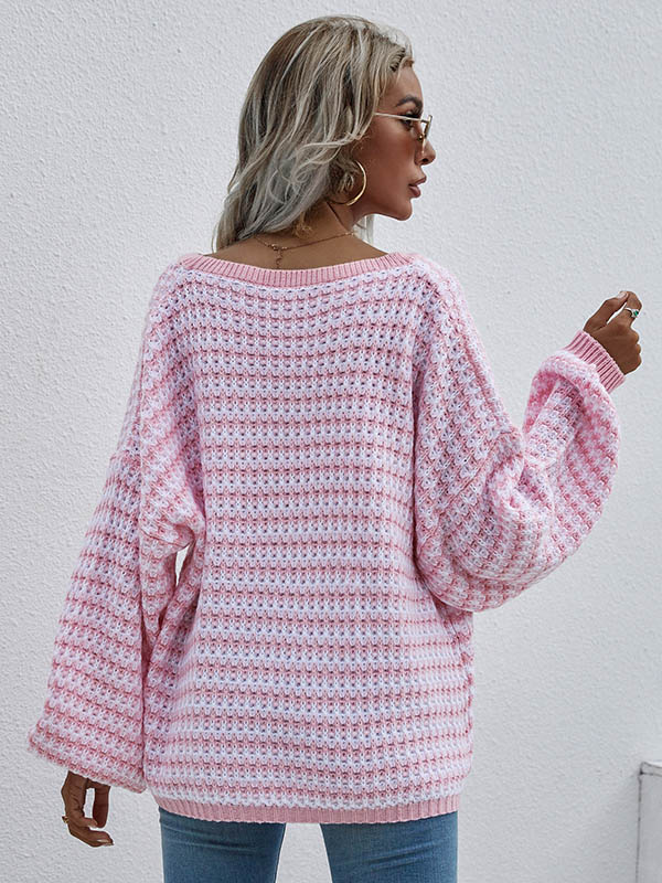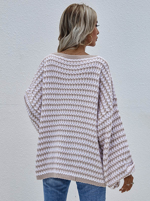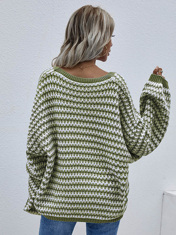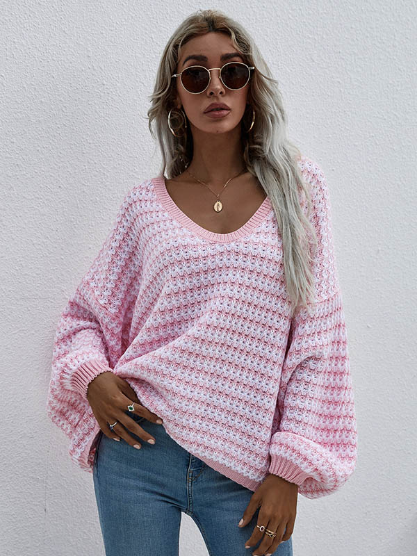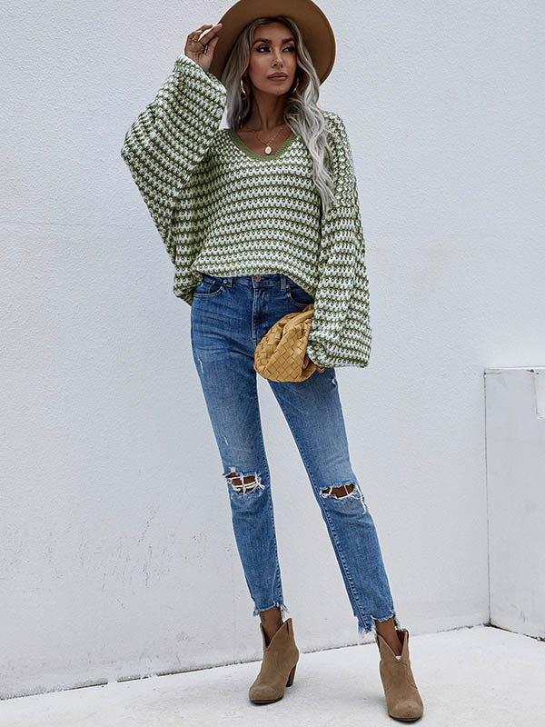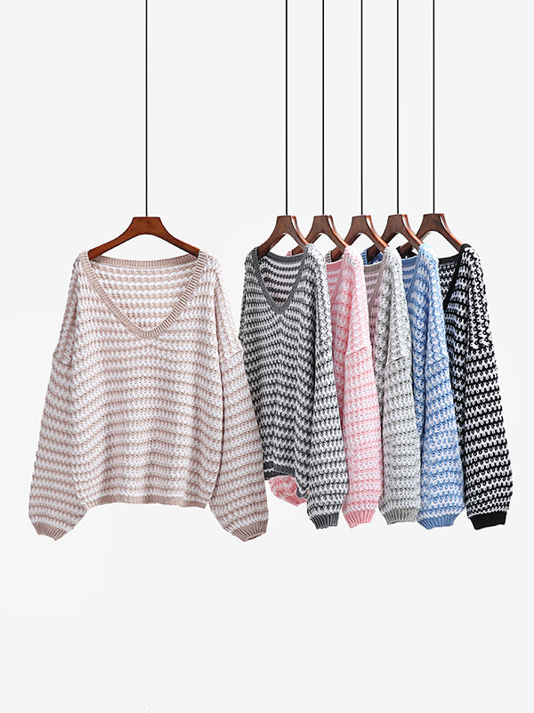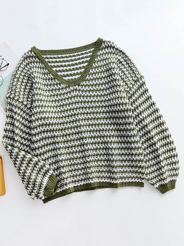 flowersverse Original Loose Striped 8 Colors V-Neck Long Sleeves Sweater Top